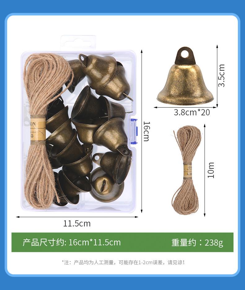 Thickened bronze bell 38mm*30+2mm 10m hemp rope*1+airplane box 20*14*4