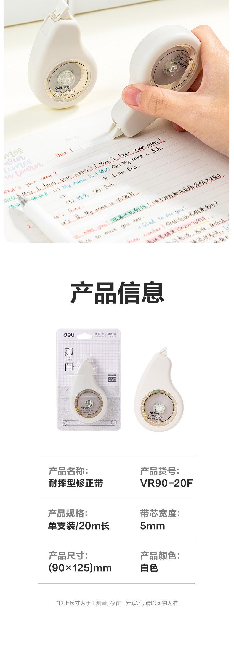Deli VR90-20 Cinta Correctora de Tono Claro Resistente a Caídas Suaves 20m Gran Capacidad Cinta Correctora de Alto Valor de Color para Estudiantes
