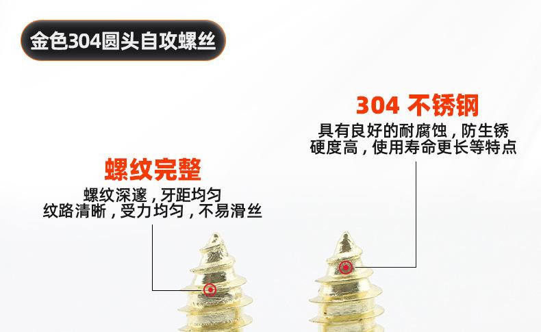 Tornillos pequeños autorroscantes de cabeza redonda en cruz de acero inoxidable 304, dorados, de cabeza plana y chapados en oro, M2M3M4M5M6