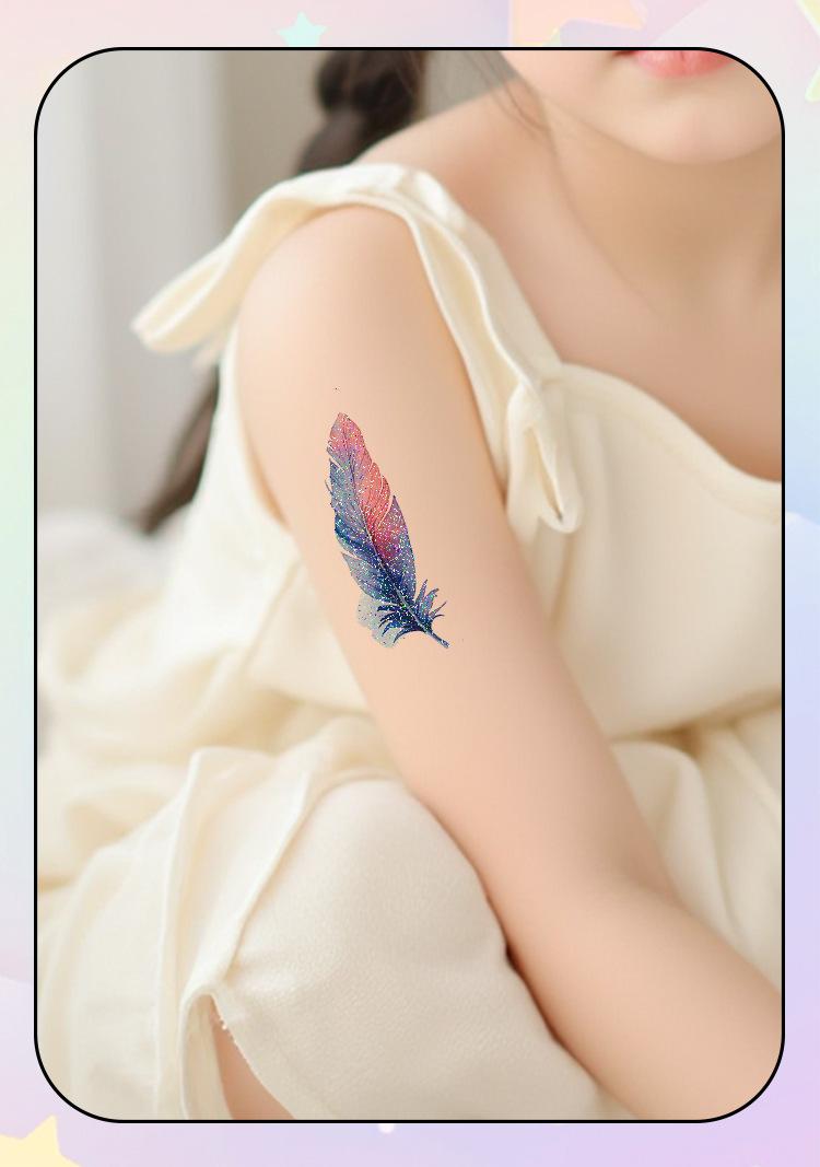 Pegatina de tatuaje con plumas de colores, purpurina rosa, resistente al agua, de larga duración, para brazos y piernas de mujer, estética avanzada, lavable.