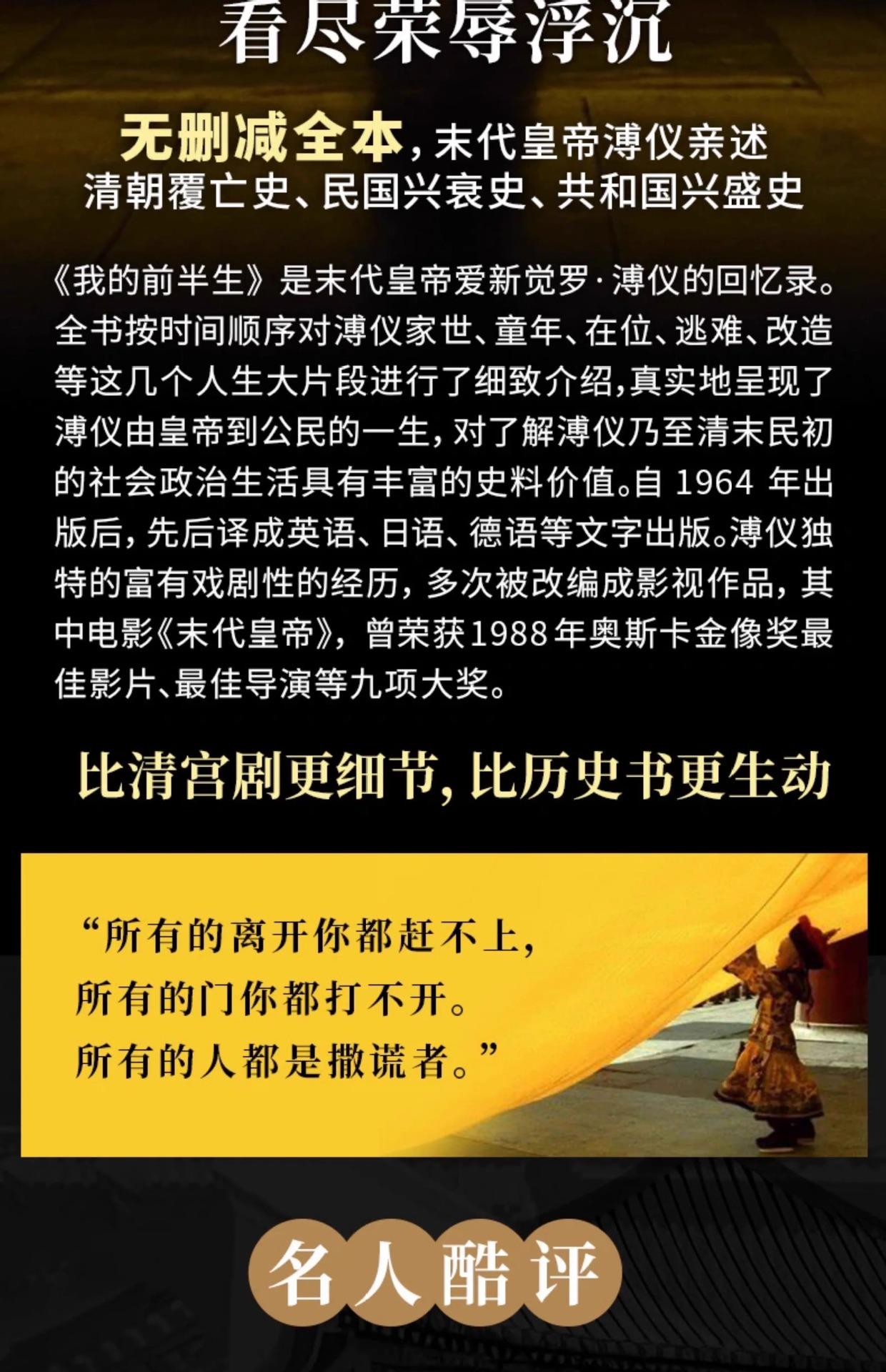 En la primera mitad de mi vida, no borré la biografía personal de personajes históricos del último emperador Aixinjueluo Puyi.