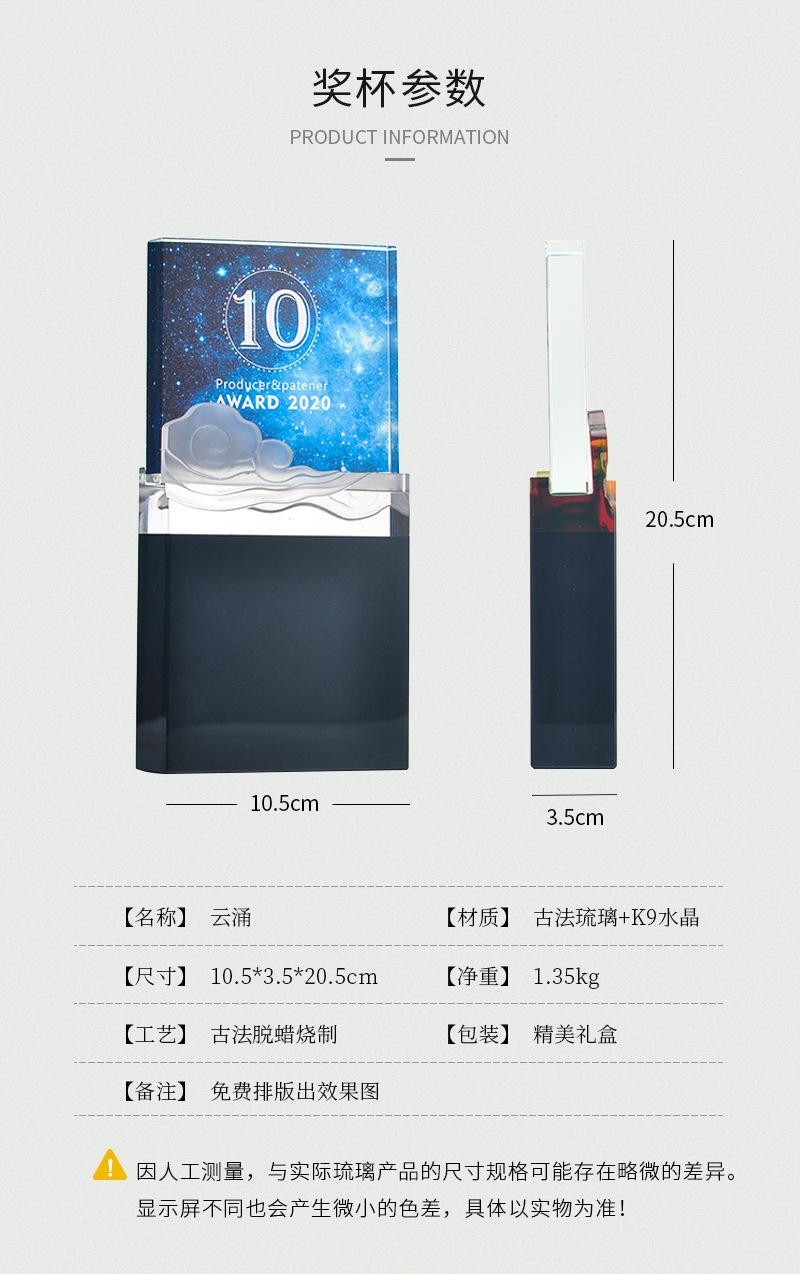 Trofeos de cristal originales de Yunyong, producción de la empresa, premios de la reunión anual, medallas para personal destacado, alto grado