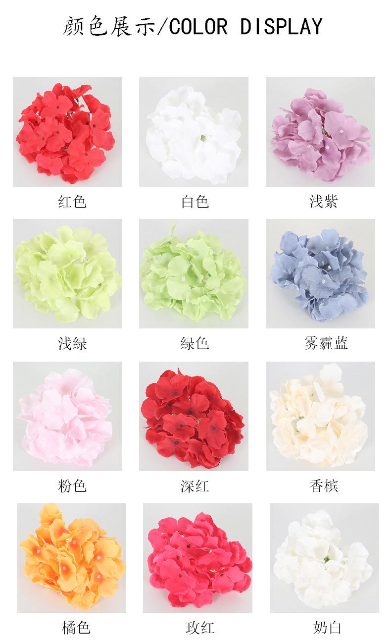 Cabeza de hortensia de simulación, festival, salón de bodas, guía de camino, pared de flores, hilera de flores, decoración, arreglo floral, fábrica de flores falsas, venta al por mayor
