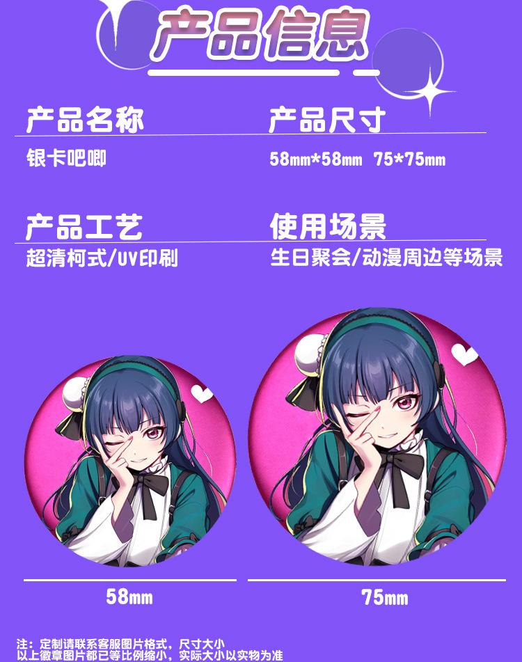 Insignia de hojalata deliciosa de tarjeta plateada autoimprimible Wen Chuang mijo personalizado versión Q del compañero bidimensional Gu Mei película táctil