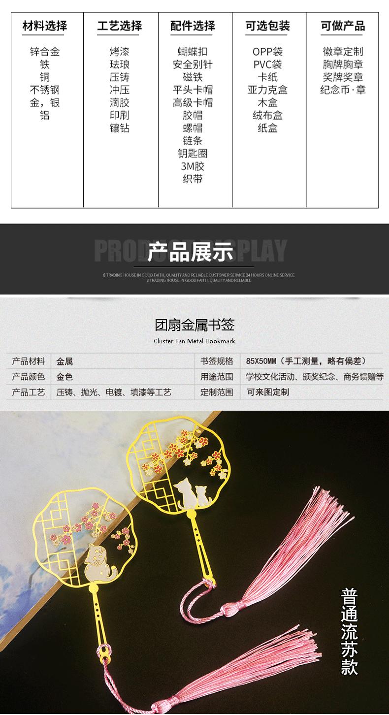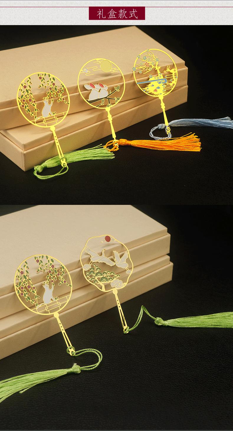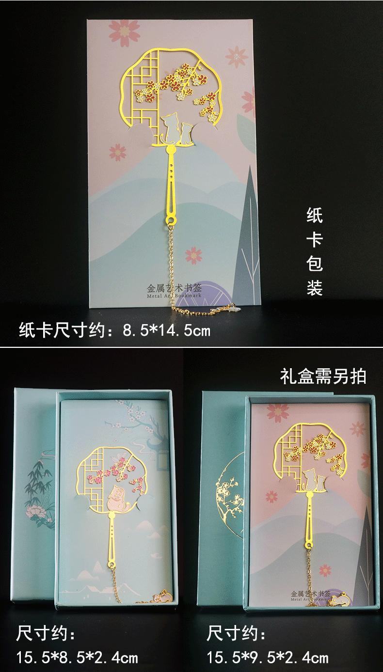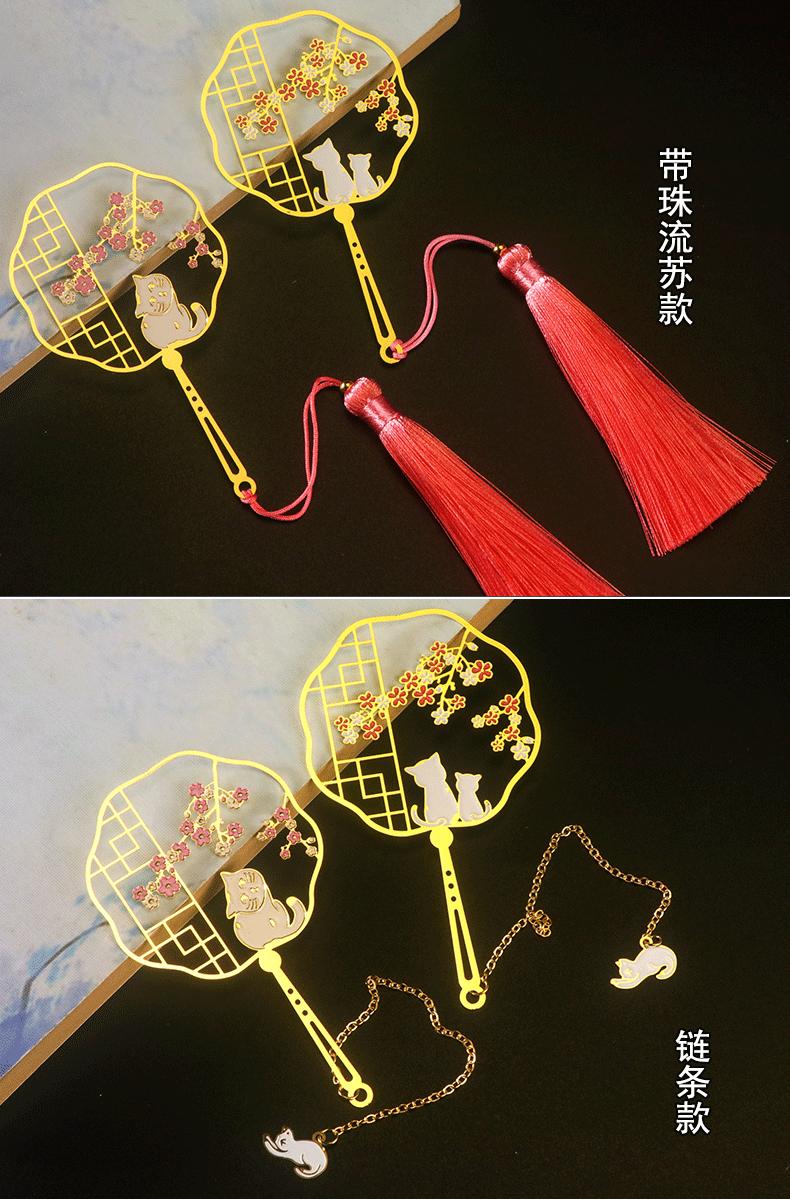 Marcador de abanico de gato de estilo chino clásico exquisito marcador de abanico de metal hueco