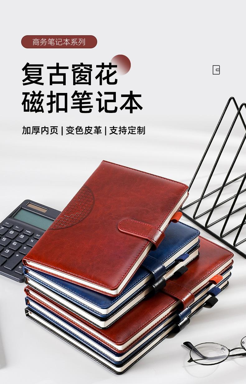 Libreta con botones magnéticos y decoración de ventanas vintage, libreta de notas para oficina, libro de registro de reuniones, libreta de cuero sencilla