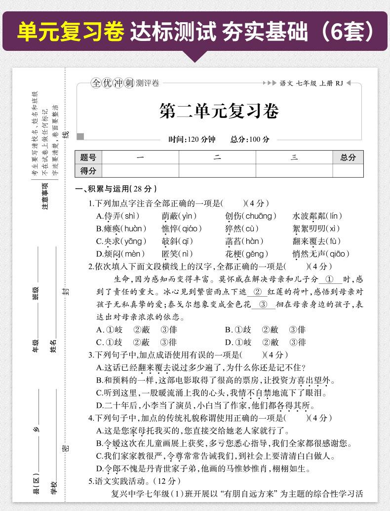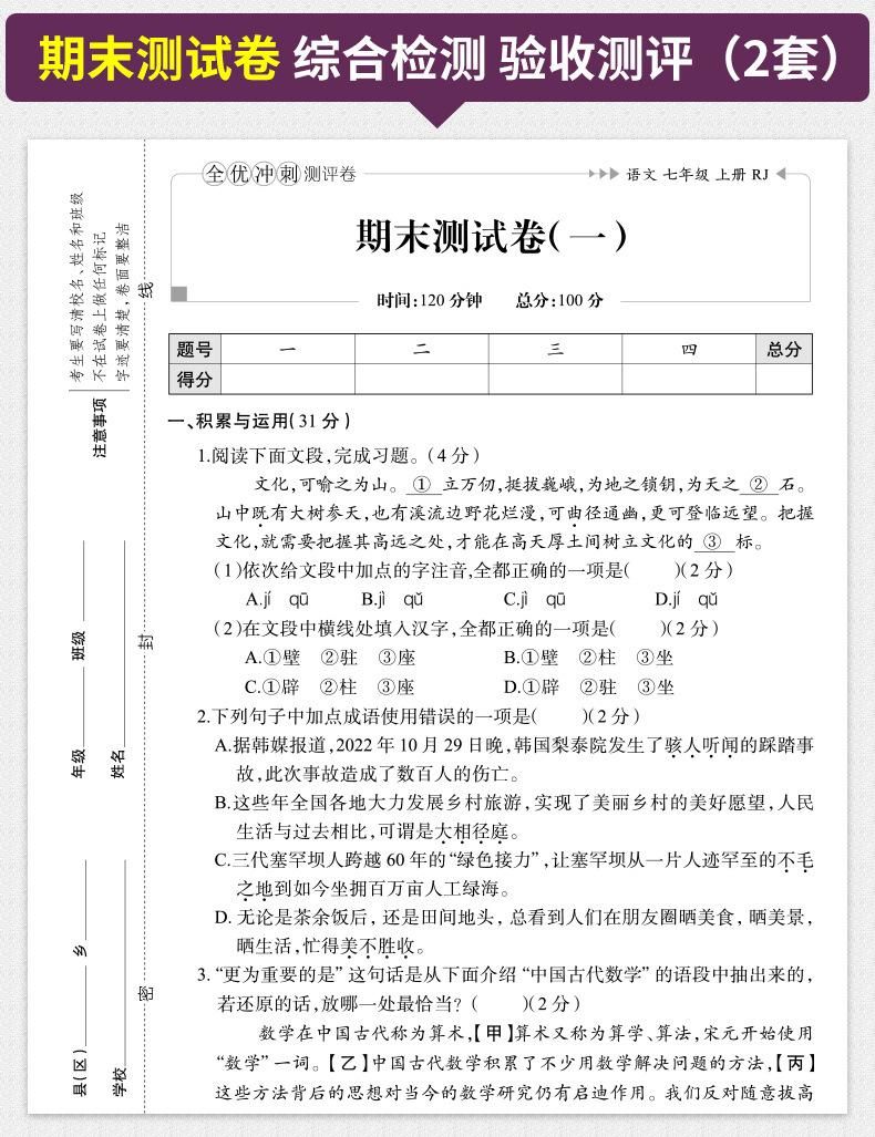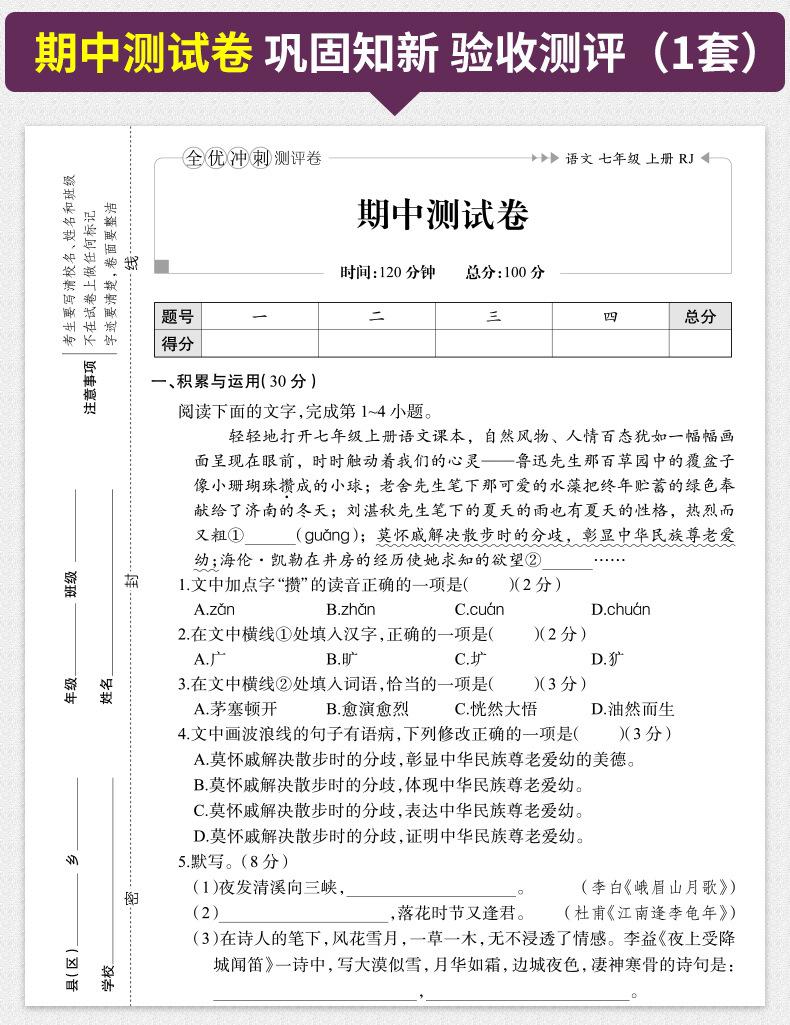 Examen de velocidad con excelentes calificaciones para estudiantes de secundaria, séptimo grado, primer y segundo volumen, estudiantes de primaria, simulación de matemáticas chinas