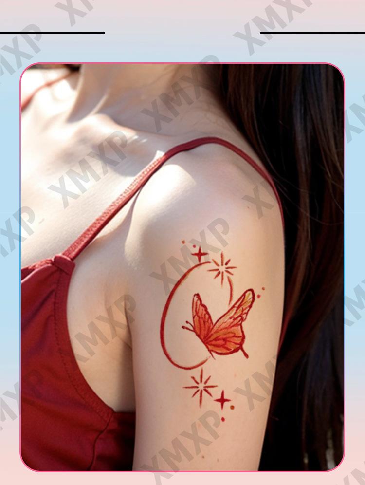 Preciosa mariposa colorida y hermosa pegatina de tatuaje impermeable de larga duración para brazo de mujer, clavícula, fresca, de alta gama, lavable.