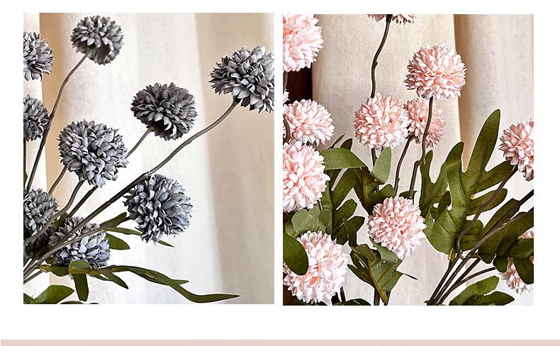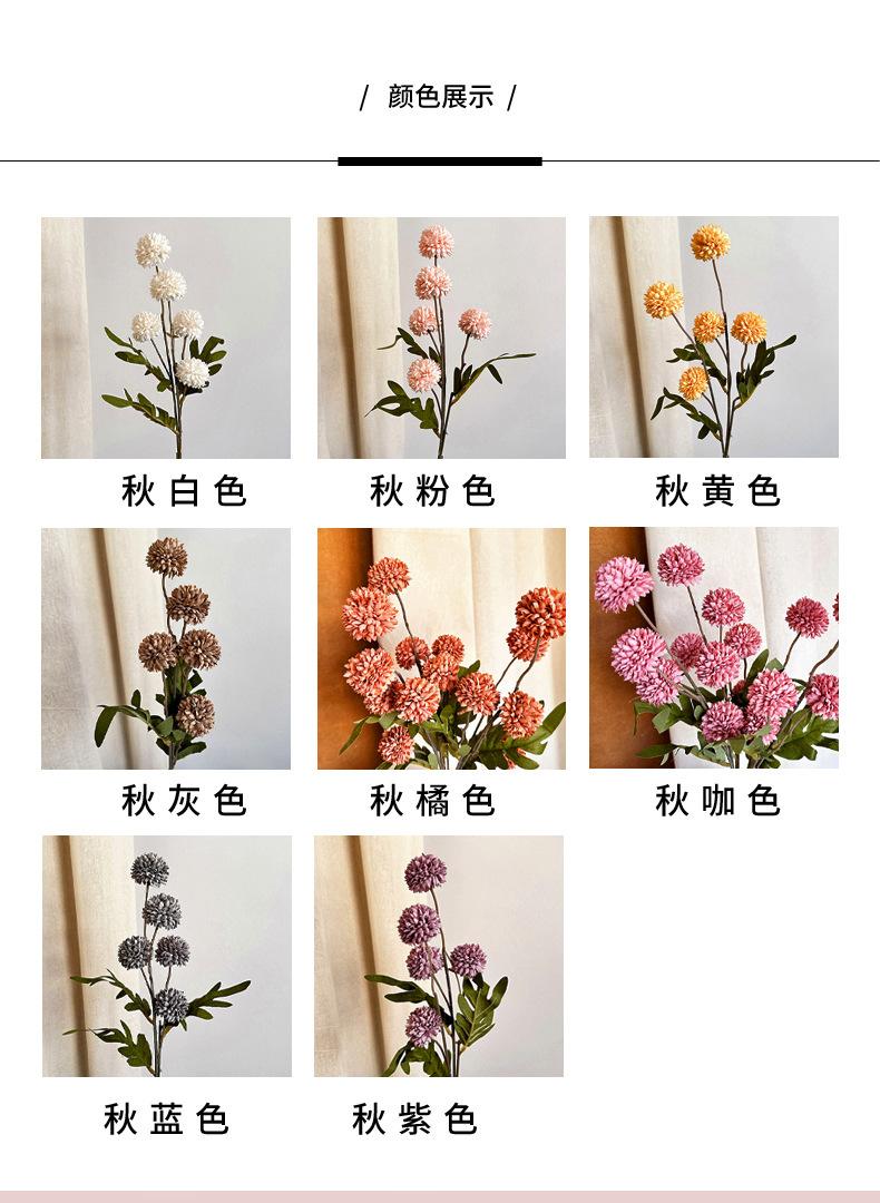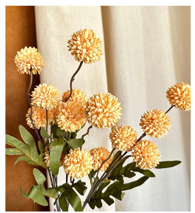 Mini flor de seda de crisantemo de tenis de mesa con 5 cabezas de diente de león para decoración de sala de estar, color otoñal, bola pequeña, adornos de flores artificiales