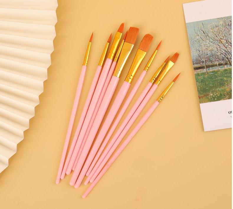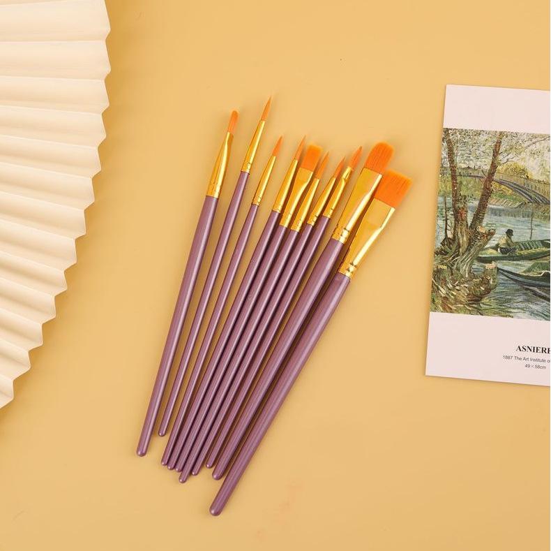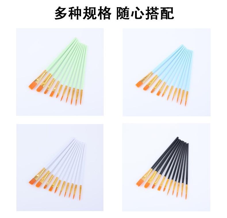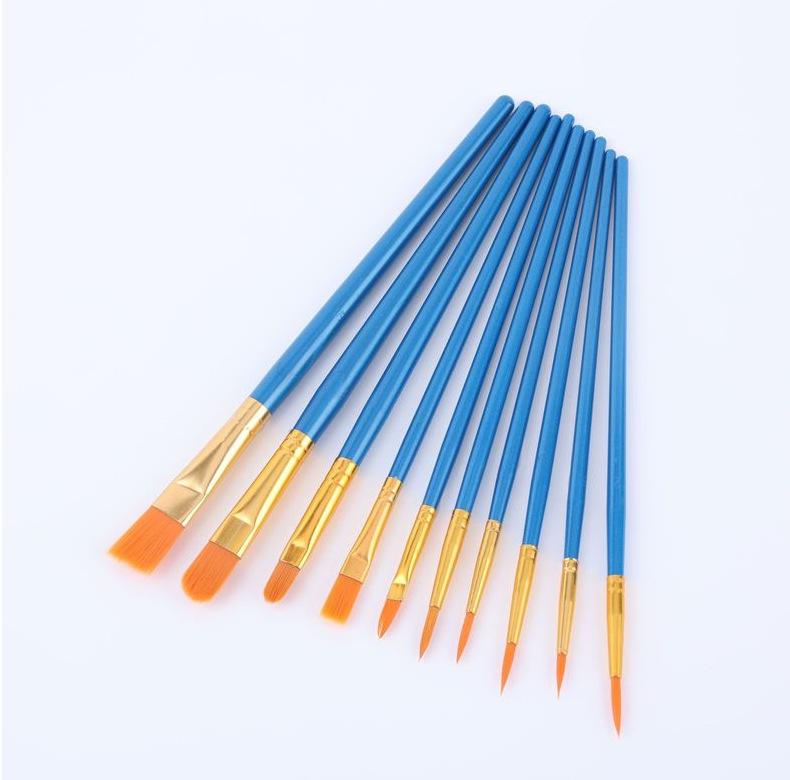 Nuevo juego de 10 pinceles de plástico perlados para pintar acuarela, pintados a mano, para pintar al óleo, transfronterizos
