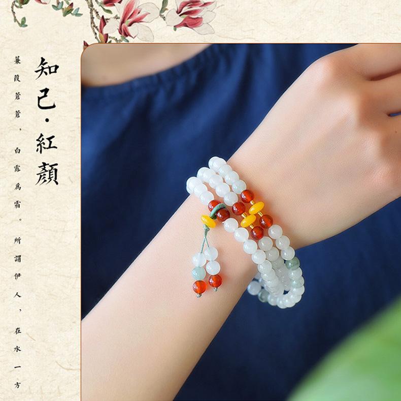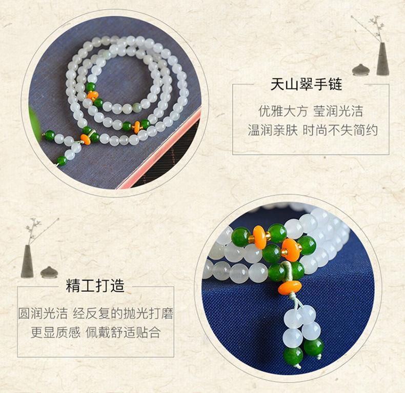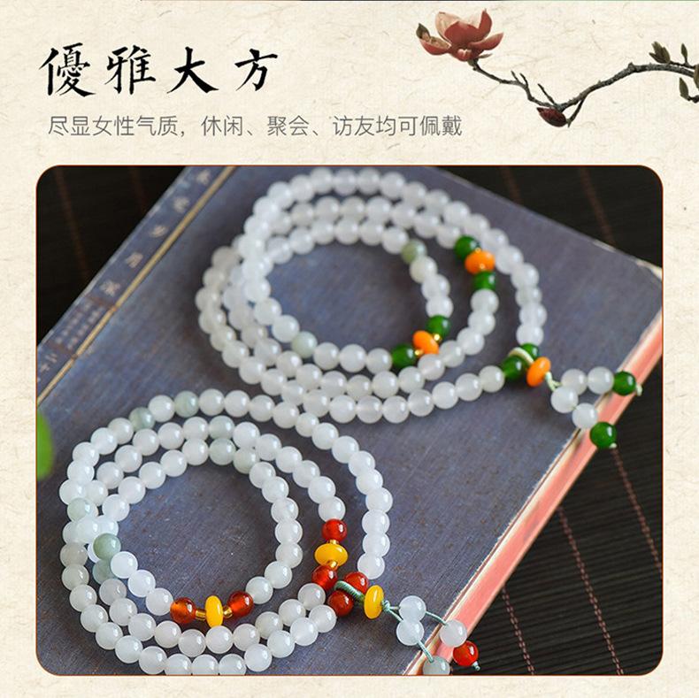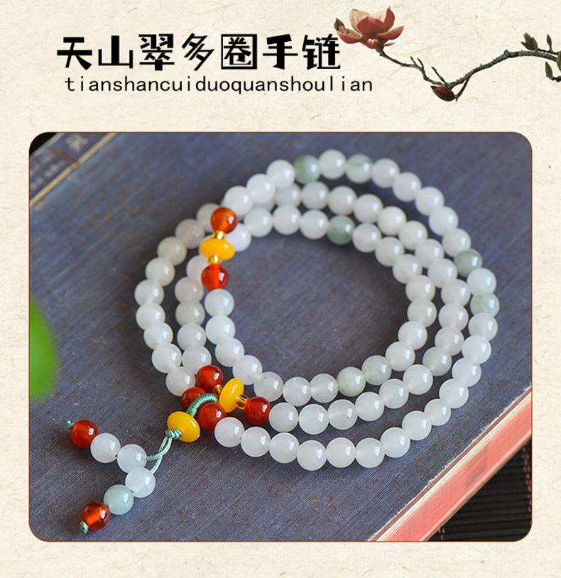 Pulsera Tianshan Cui lujo ligero alto sentido 108 cuentas multicírculo juego de texto cuentas de jade material antiguo pulsera de cuentas al por mayor