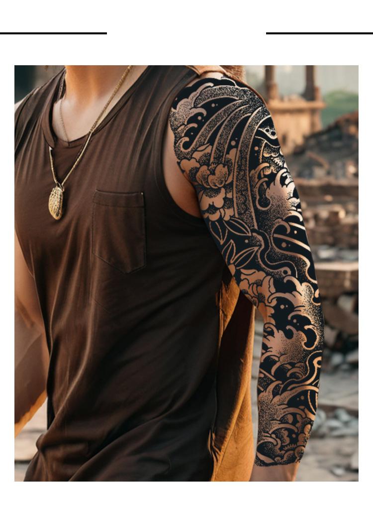 Flores y Plantas Olas Brazo Completo Adhesivo de Tatuaje Herbal para Hombres y Mujeres Impermeable Larga Duración Semipermanente No Reflectante Jugo Flor Agresiva Brazo