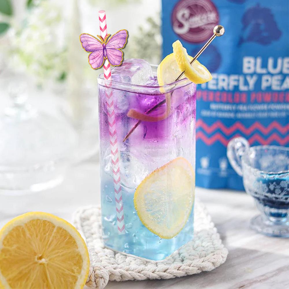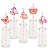 Decoración transfronteriza con temática de mariposas, vaso de té con leche y pajita de papel desechable, suministros para fiestas, 2025