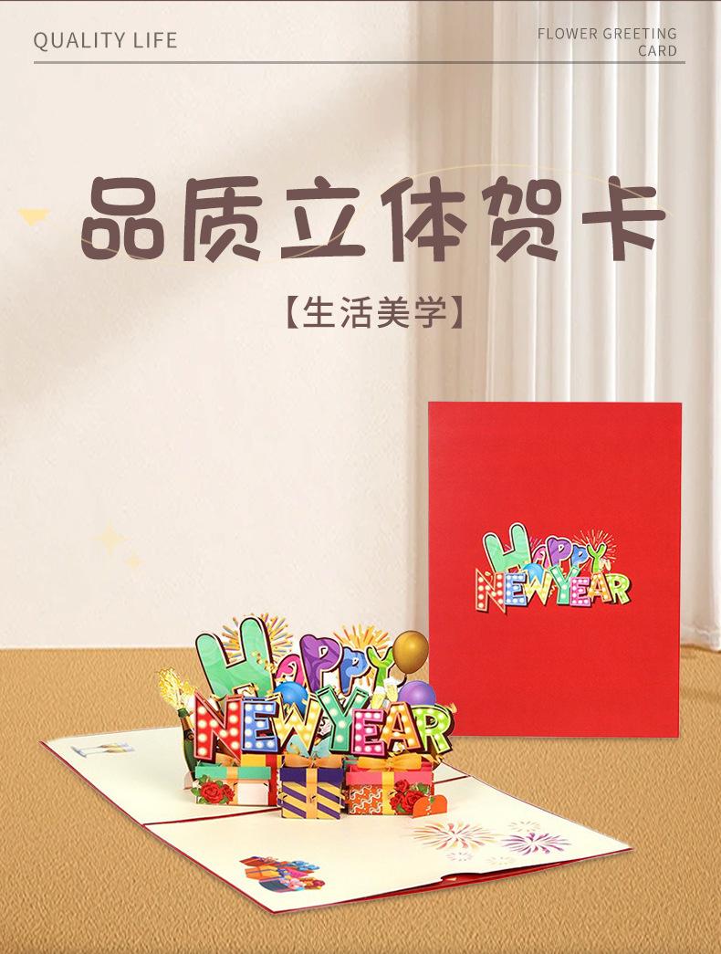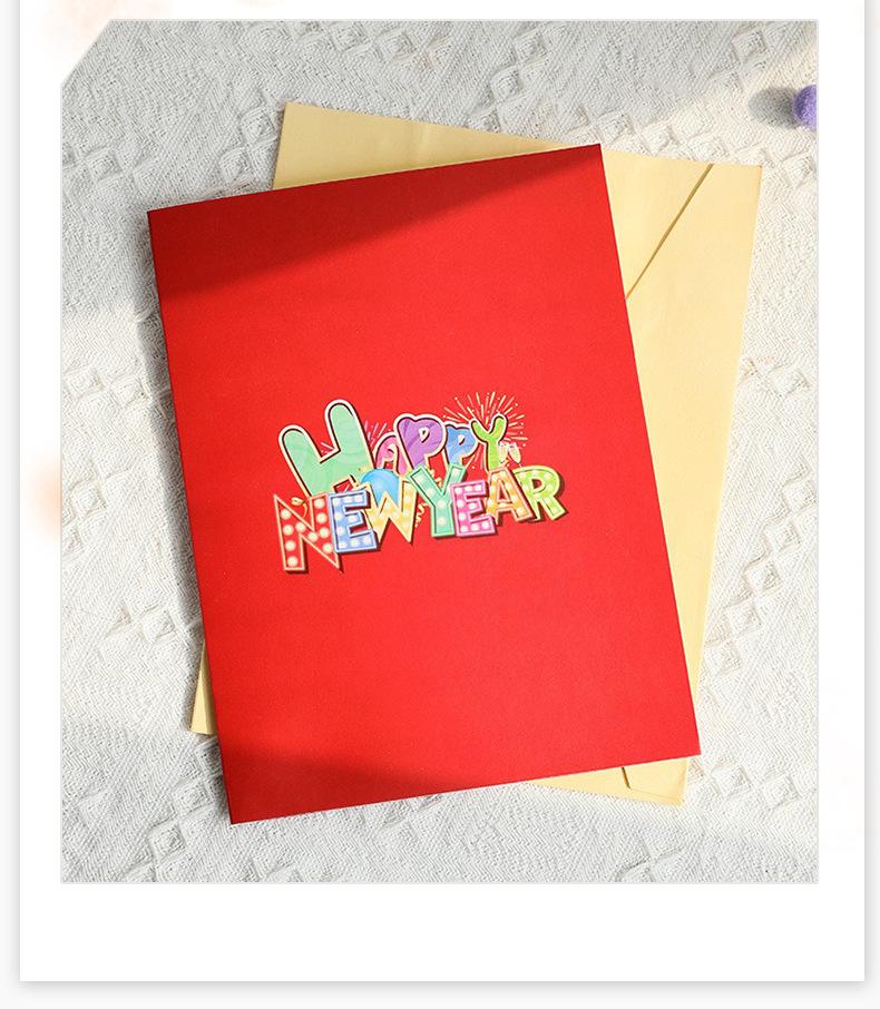 2025 Ilustración Festiva Pintada a Mano Feliz Año Nuevo Tarjeta de Mensaje de Bendición Estéreo 3D Admite Personalización