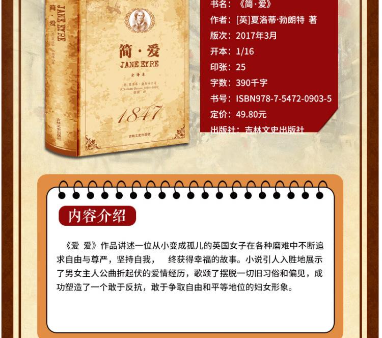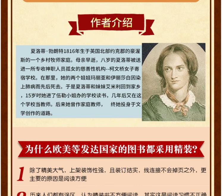 Obra Maestra Literaria Mundial Jane Eyre Tapa Dura Íntegra Novela Literaria Libro de Lectura Extracurricular para Estudiantes de Primaria y Secundaria y Adolescentes