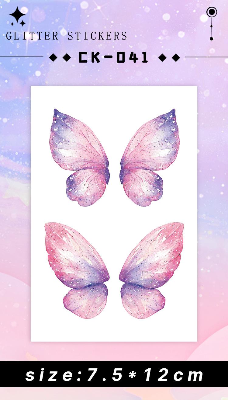 Pegatina de tatuaje con purpurina de mariposa de color, resistente al agua, de larga duración, para maquillaje facial y de brazo de mujer, bonita personalidad, fresca y lavable.