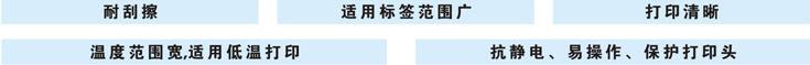 Amplio rango de adaptabilidad de etiquetas, buena versatilidad. Excelente efecto de impresión, costo económico. Resistencia a altas temperaturas,