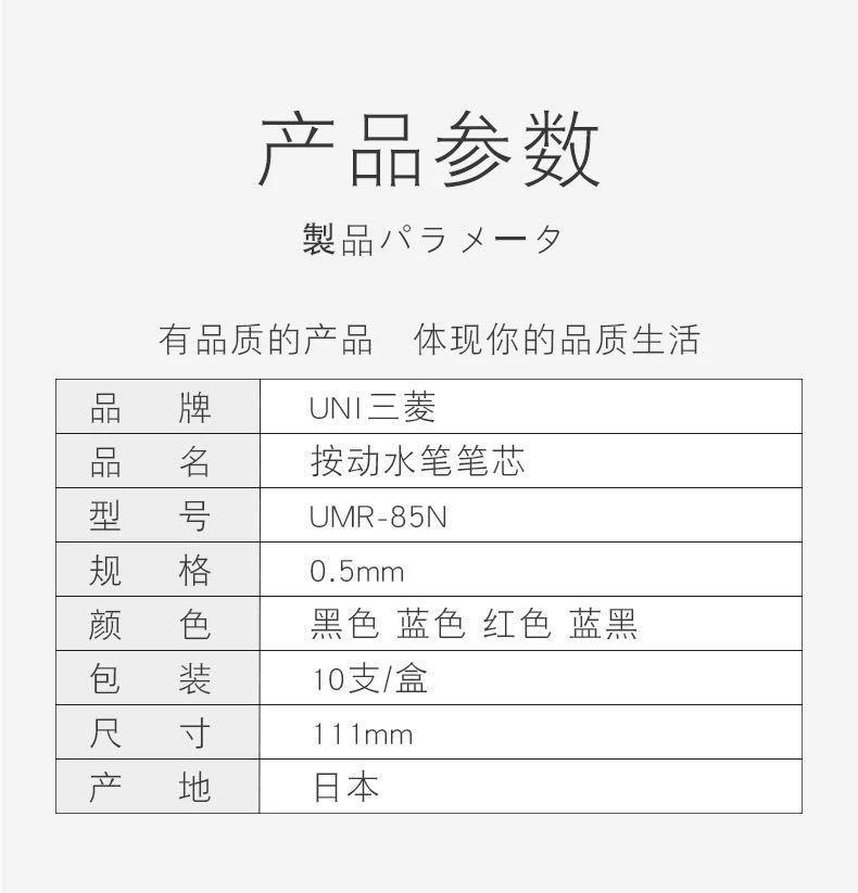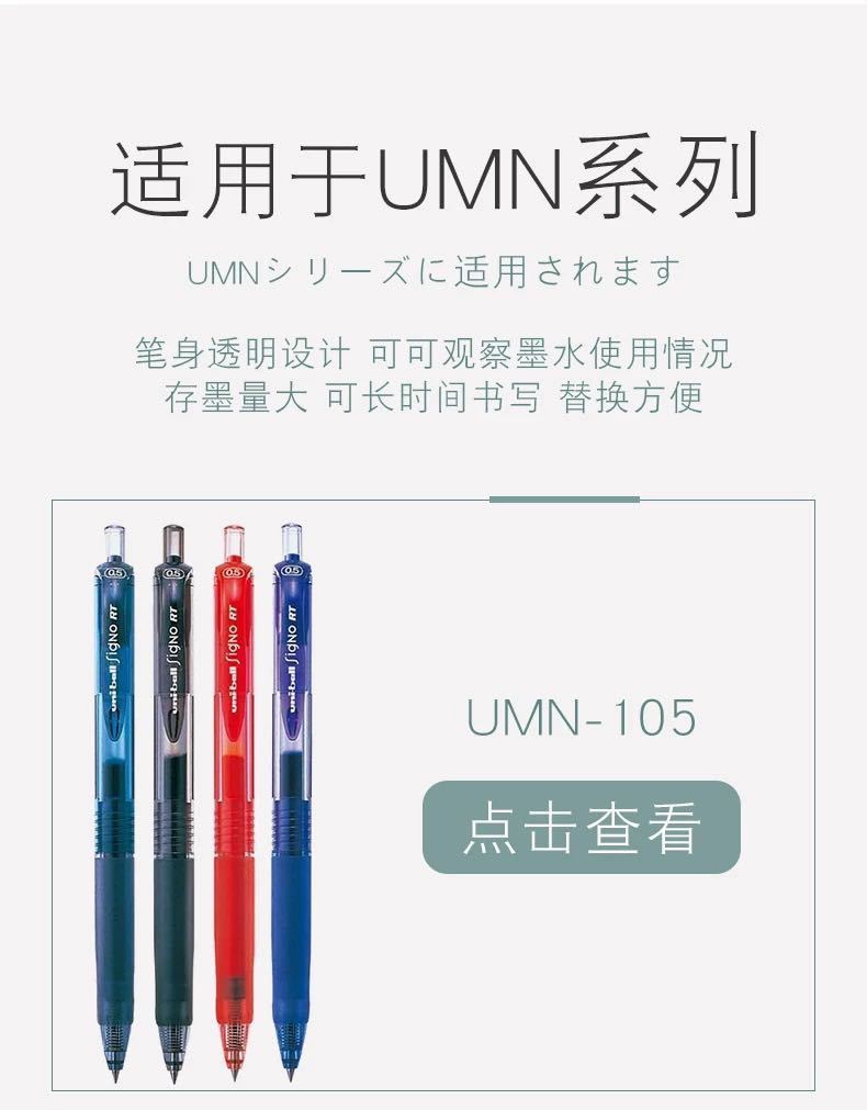 Recarga UNI Mitsubishi UMR-85N/83 Recarga Neutra para Pluma de Gel de Presión Test Negro Agua Recarga