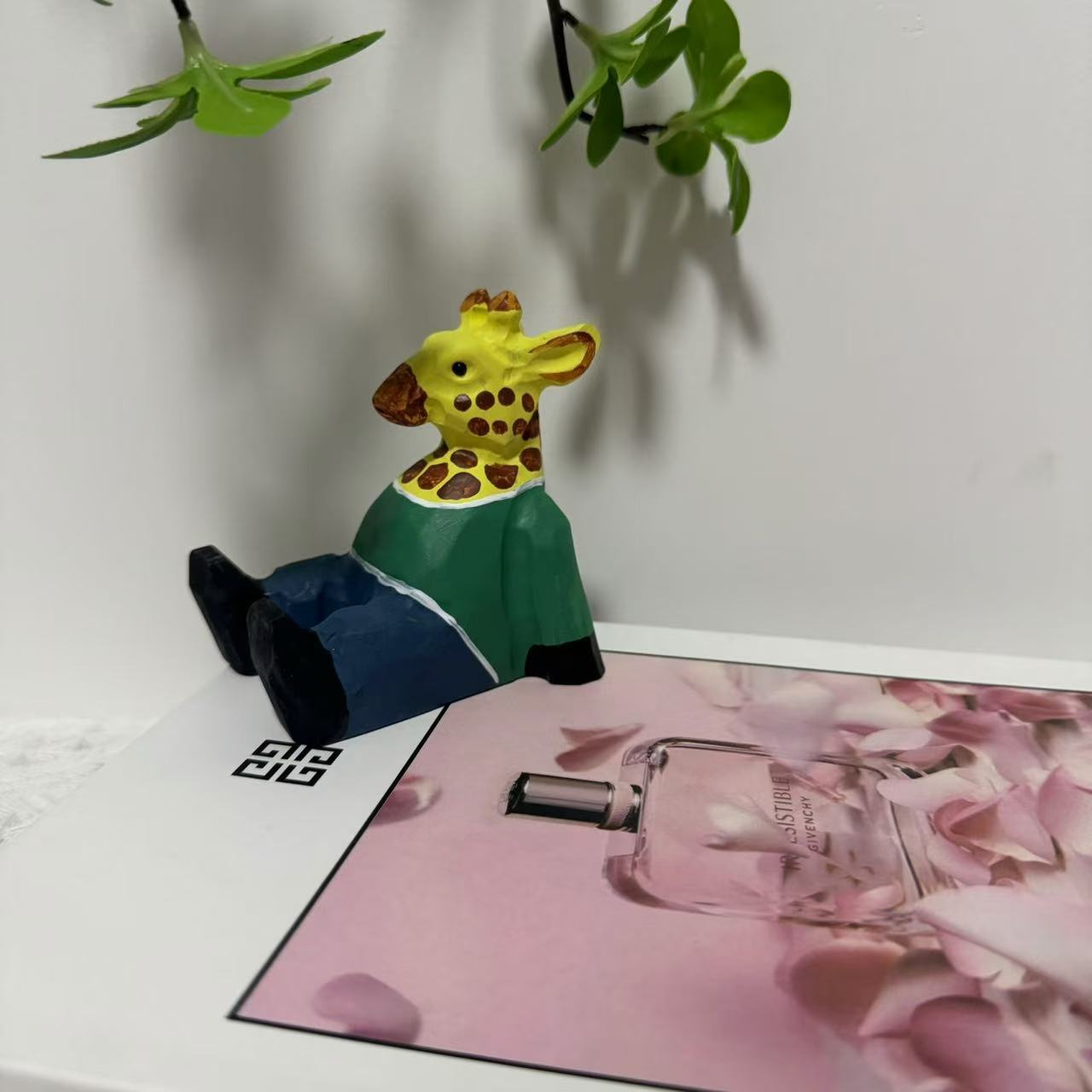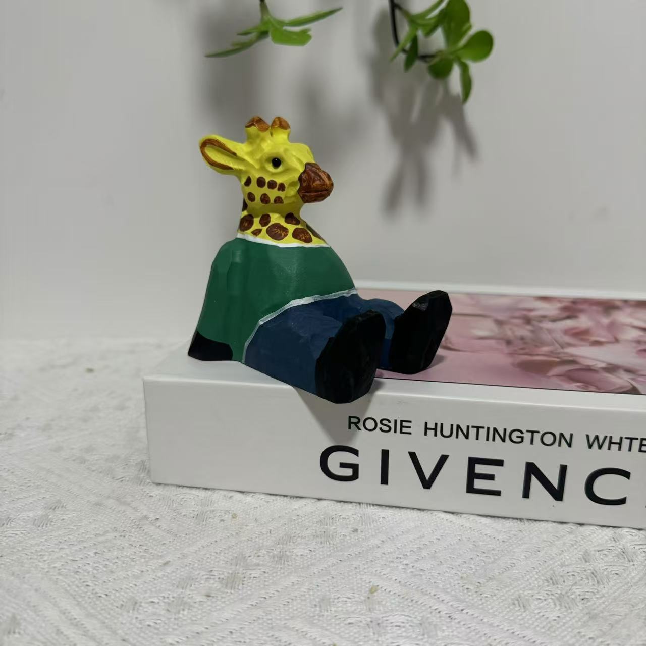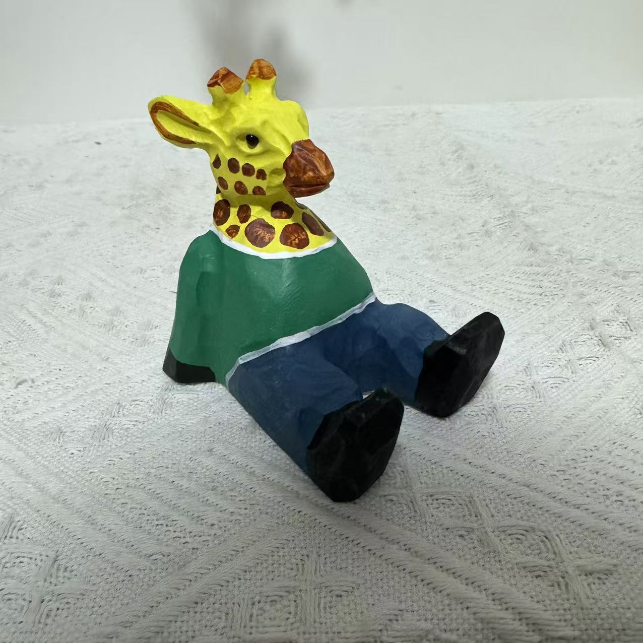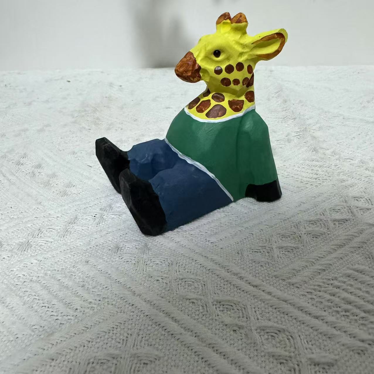 Soporte para teléfono móvil tallado a mano en madera jirafa creativo lindo dibujos animados escritorio de oficina práctico adornos decorativos teléfono móvil