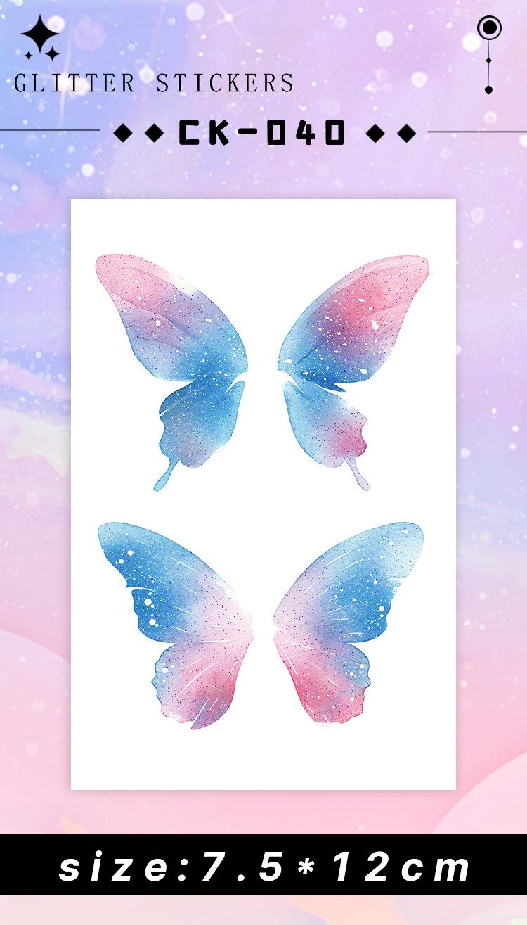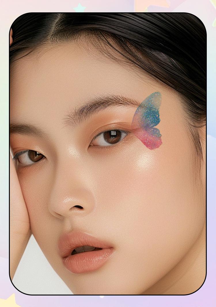 Pegatina de tatuaje de mariposa colorida con purpurina para ojos, resistente al agua y de larga duración, para mujer, con un sentido avanzado, hermosa personalidad, fresca y lavable.