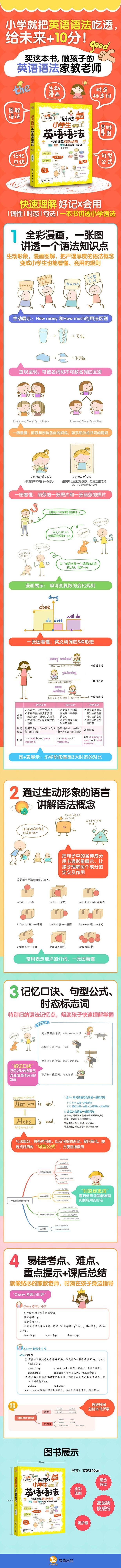 Este libro está escrito de acuerdo con los nuevos estándares del currículo de inglés de primaria del Ministerio de Educación. Categoriza y resume sistemáticamente los puntos de conocimiento de gramática inglesa que necesitan dominarse en la etapa de primaria. Forma 20 capítulos y 65 secciones desde los tres aspectos de morfología, sintaxis y tiempo. Utiliza una gran cantidad de mapas mentales, tablas y diagramas para deconstruir los conceptos gramaticales de primaria, y utiliza ilustraciones vívidas e interesantes para explicar los detalles de la gramática de primaria. El libro resume las reglas, experiencias y técnicas resumidas por el autor como profesor de primera línea durante muchos años, ayuda a los estudiantes a encontrar atajos para dominar de forma integral y sólida el conocimiento gramatical y mejorar su nivel de inglés. Al mismo tiempo, se adjuntan "Sugerencias para la Tutoría Parental" a los puntos clave de conocimiento para ayudar a los padres a guiar mejor el aprendizaje de sus hijos.