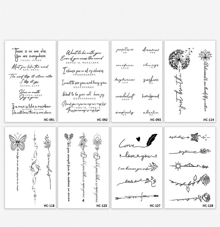 Tatuaje Adhesivo Herbal para Mujer Resistente al Agua Larga Duración Letra Mariposa Clavícula Brazo Patrón Adhesivo Jugo Pequeño Fresco Sentido de Alta Gama