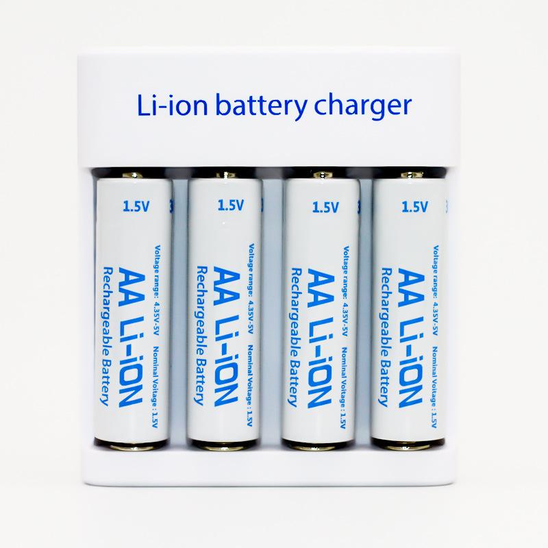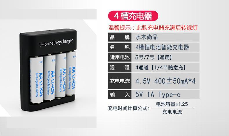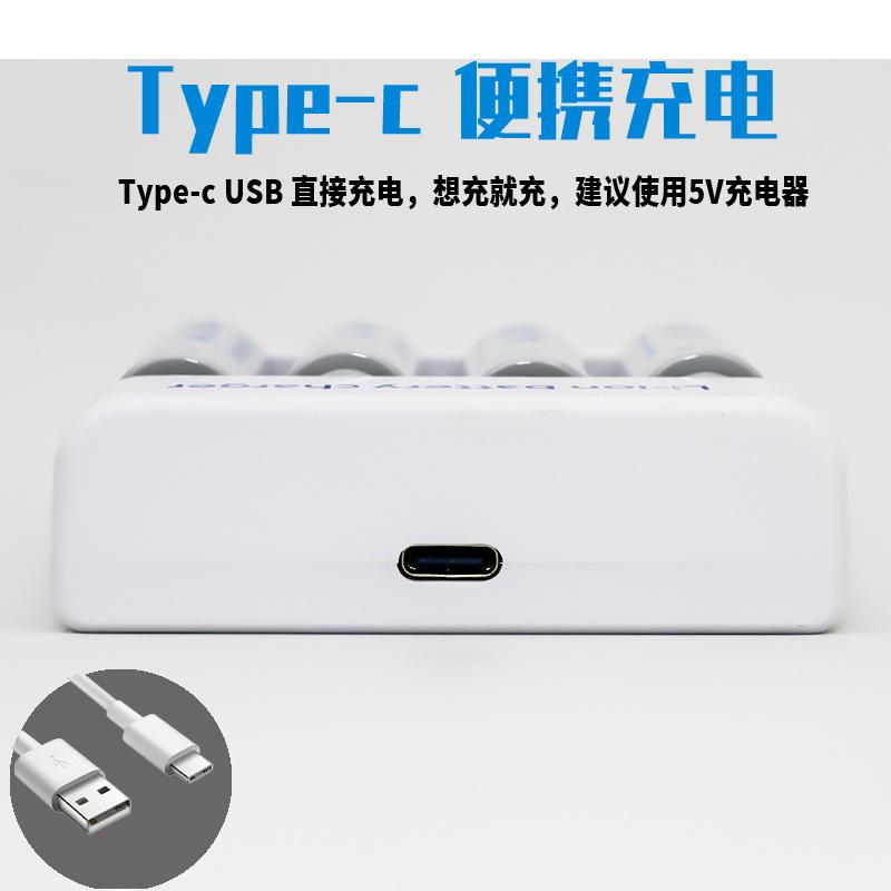 Cargador Inteligente Tipo C con Iluminación de 4 Ranuras para Baterías de Litio Puede Cargar Baterías Recargables AA/AAA de 1.5V con Carga Rápida Inteligente
