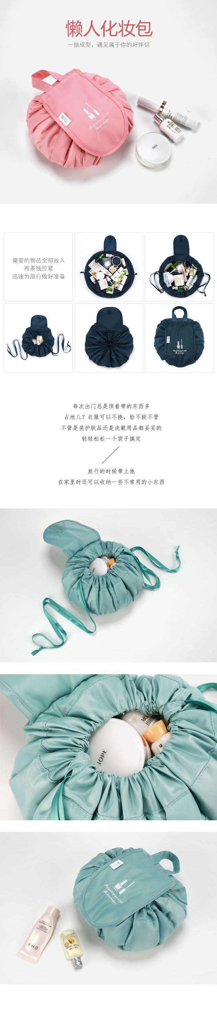 Bolsa de cosméticos perezosa, bolsa de viaje para cosméticos, bolsa de almacenamiento con cordón, bolsa de corazón para niñas, bolsa portátil de gran capacidad para mujeres