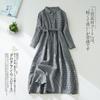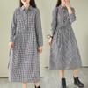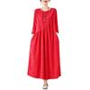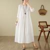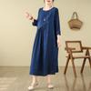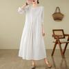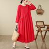 2025 Nuevo Estilo Otoño Literario Suelto Talla Grande Color Puro Jacquard Algodón y Lino Vestido de Manga Larga para Mujer Largo Medio