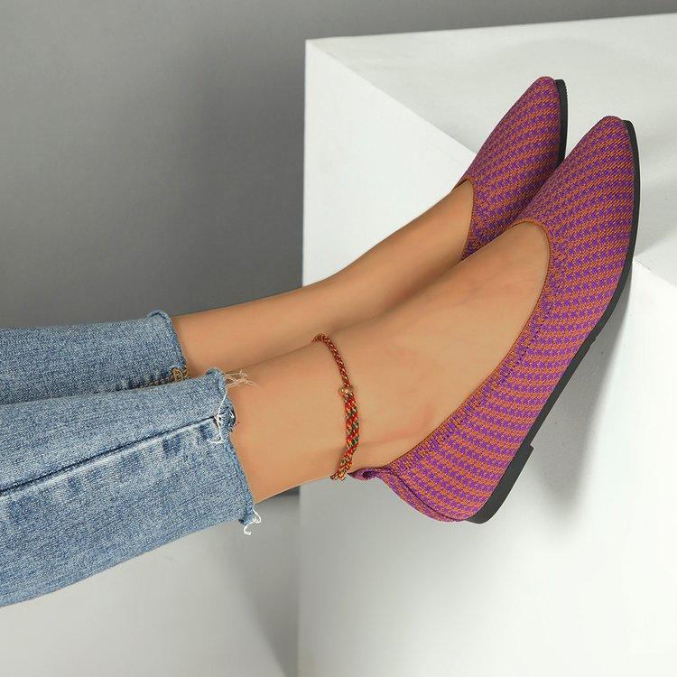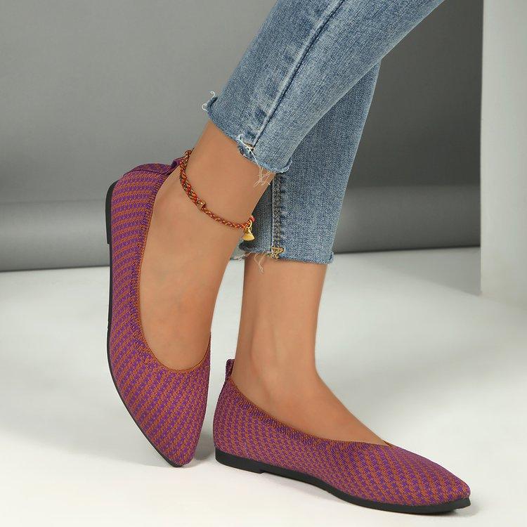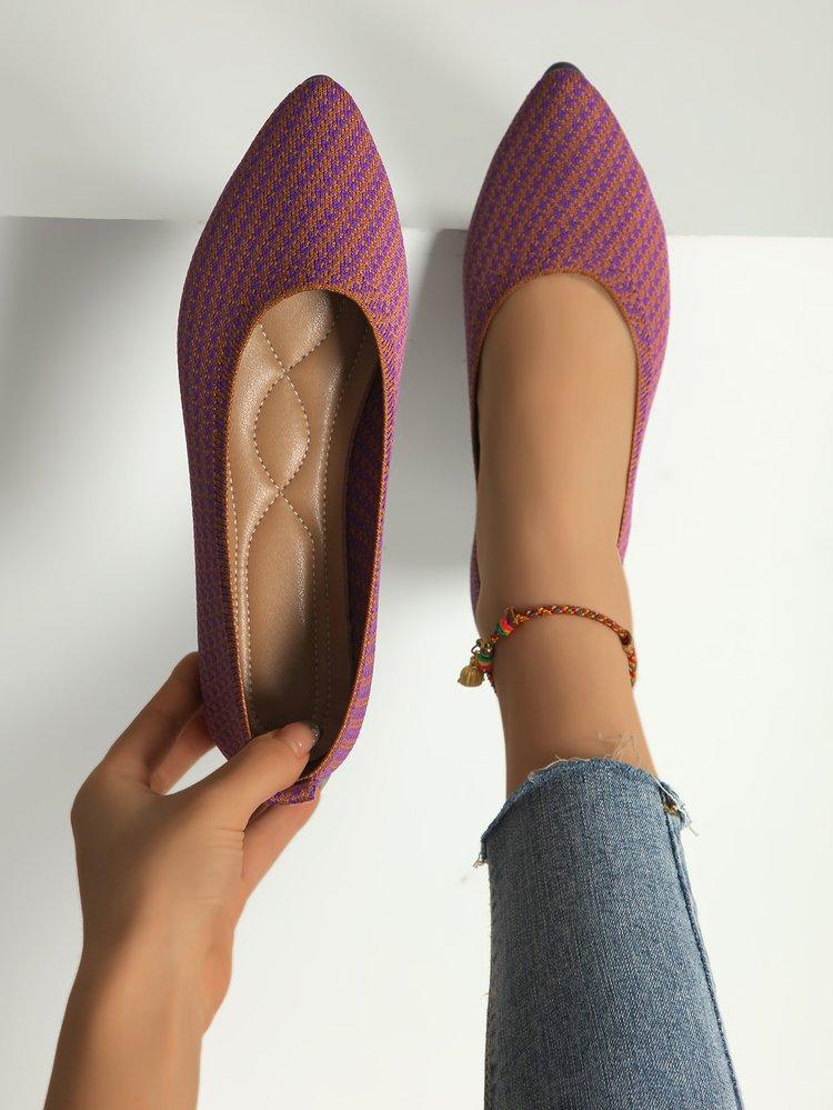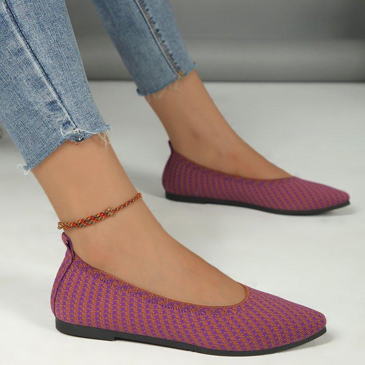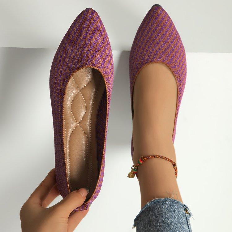 Zapatos planos de punta para mujer 2024 Nuevos mocasines de suela blanda Tejido de cuadros de imitación Zapatos planos sin cordones al por mayor Dropshipping