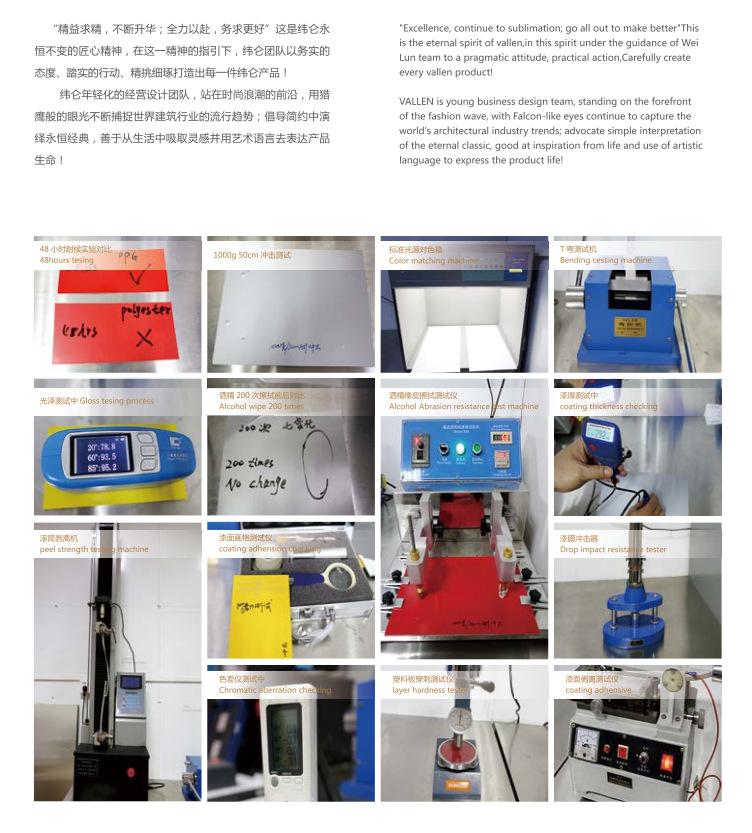 (2) La superficie de los productos de la serie Weilun 3D Space Board para exteriores está fabricada con pintura de fluorocarbono PPG, de renombre internacional, combinada con un proceso de recubrimiento con rodillo de 2 capas y 2 cocciones o 3 capas y 3 cocciones. Cada lote de productos puede presentarse con: garantía conjunta tripartita de PPG/fábrica de pintura/Weilun de 15 años de garantía de calidad.