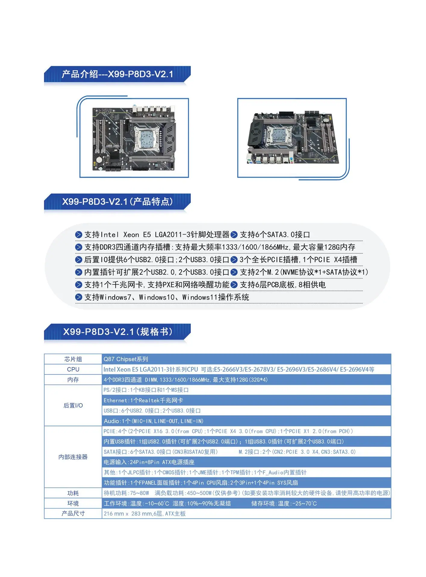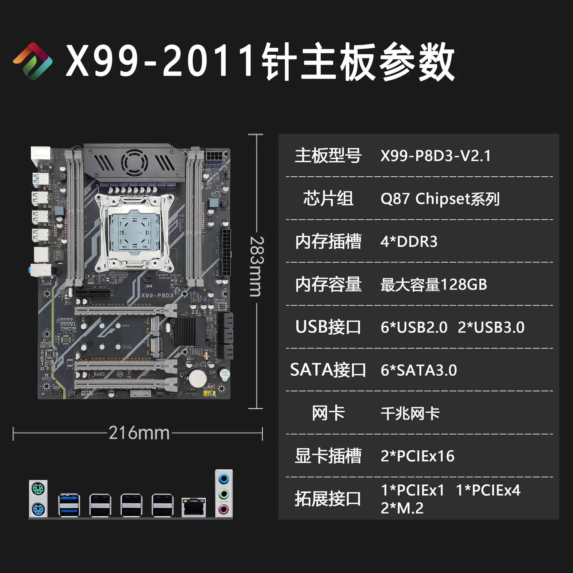 Placa Madre de Escritorio X99-P8D3 Soporta Memoria DDR3 de 2011-3 Pines PCB de 6 Capas Nueva Computadora Placa Grande
