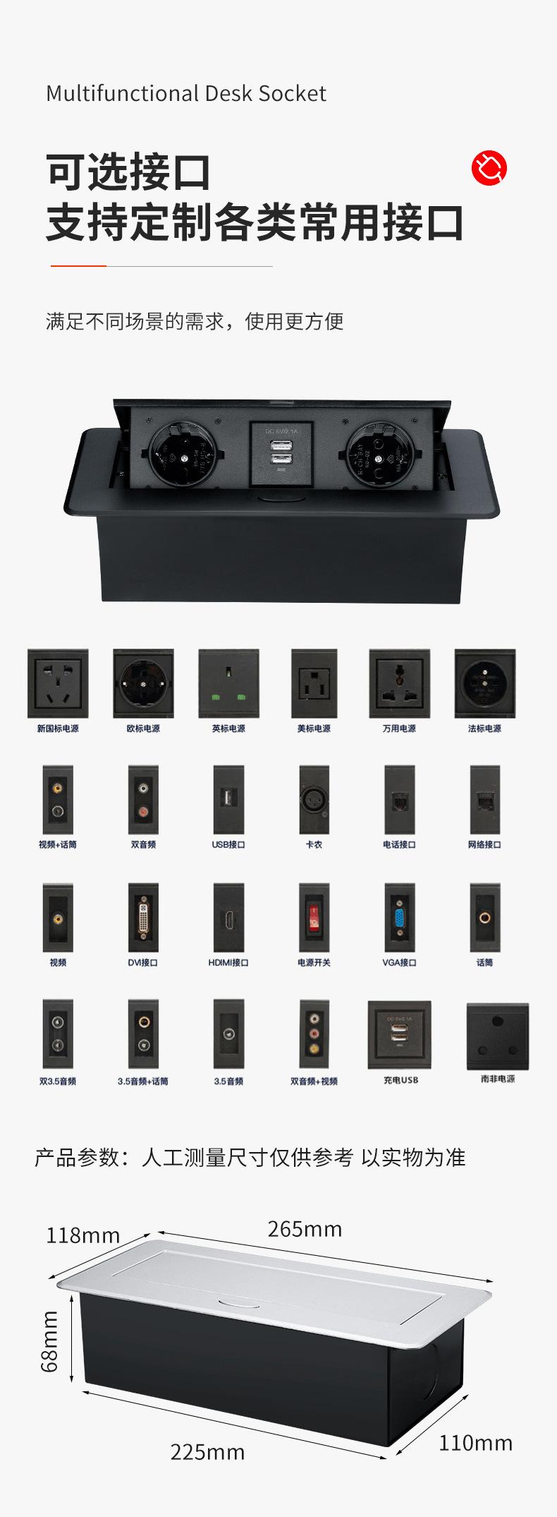 Escritorio Transfronterizo Enchufe Estándar Europeo de Elevación Lenta Emergente Empotrado Enchufe de Alimentación Escritorio Oculto Enchufe Emergente