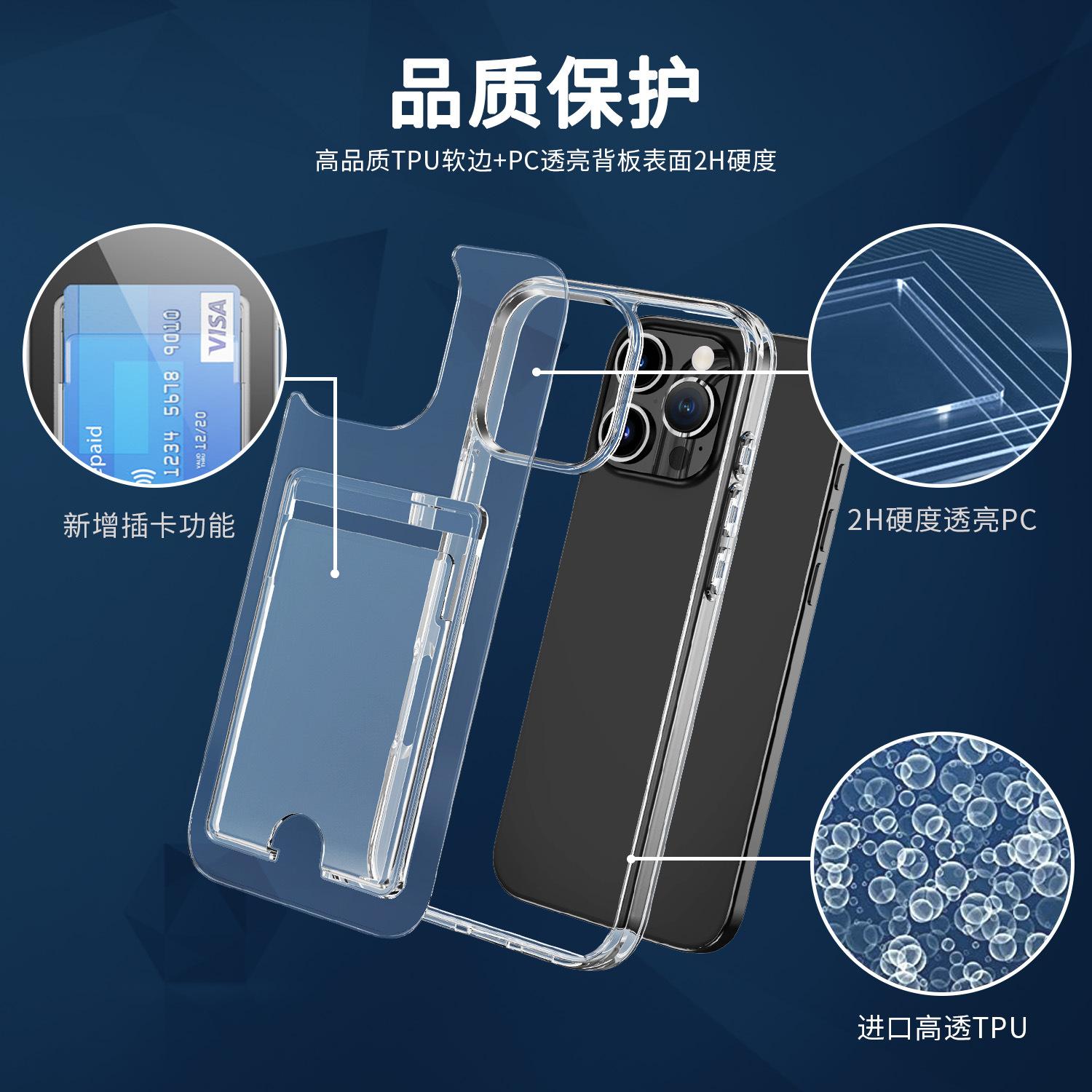 Adecuado para Iphone17Promax Carcasa de Tarjeta Cristal para Teléfono Apple 16Pro Transparente 15 Anticaídas 14 Cubierta Protectora