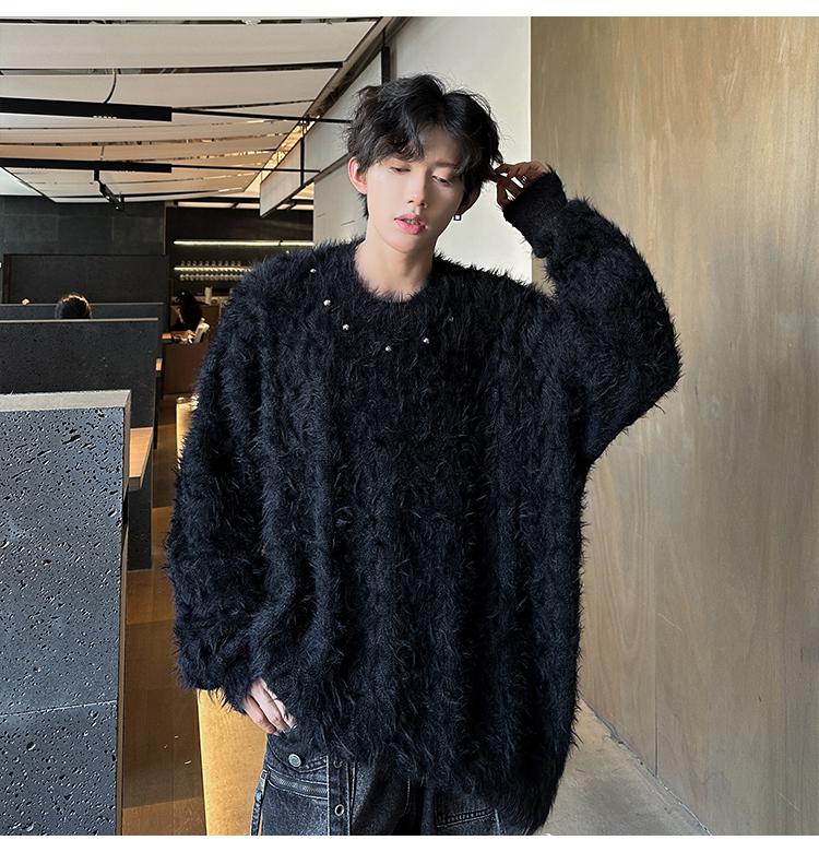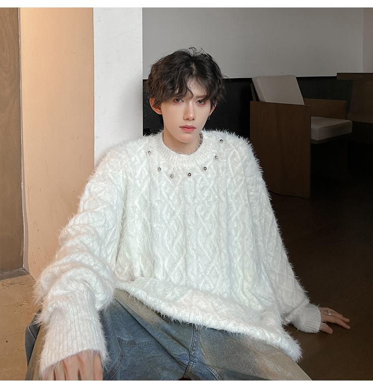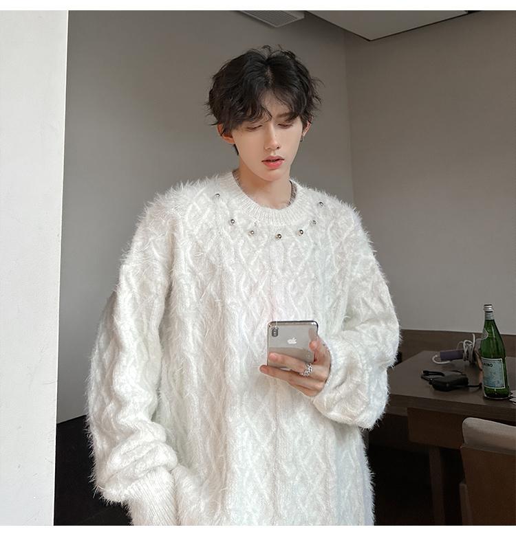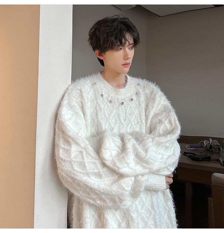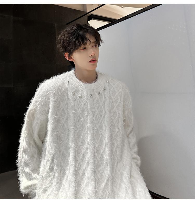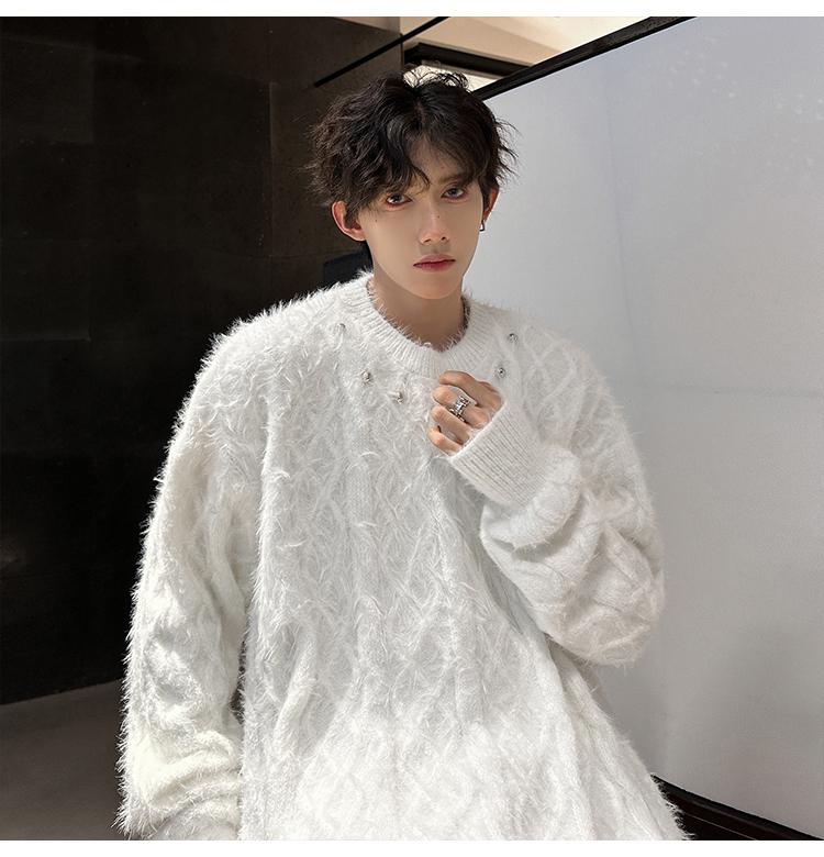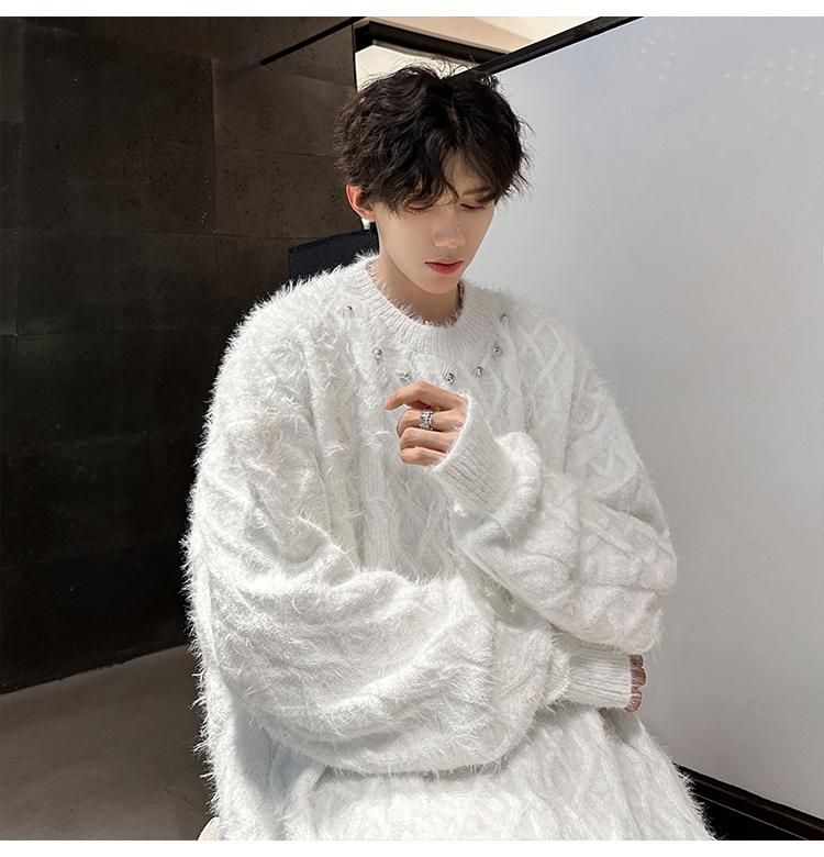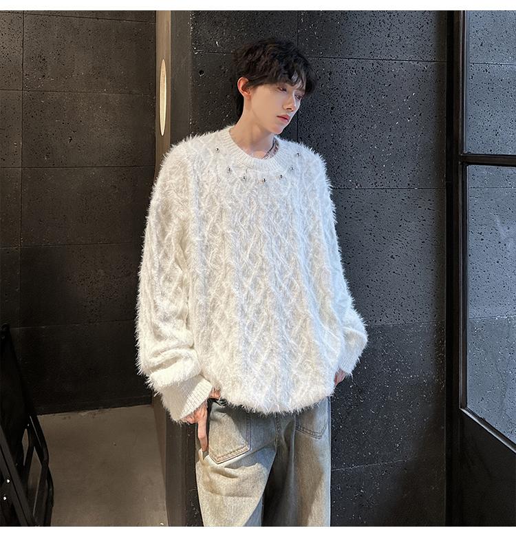 Suéter de punto jacquard de estilo perezoso para hombre, otoño e invierno, diseño de felpa de nicho de alta gama, suéter holgado de cuello redondo de felpa