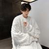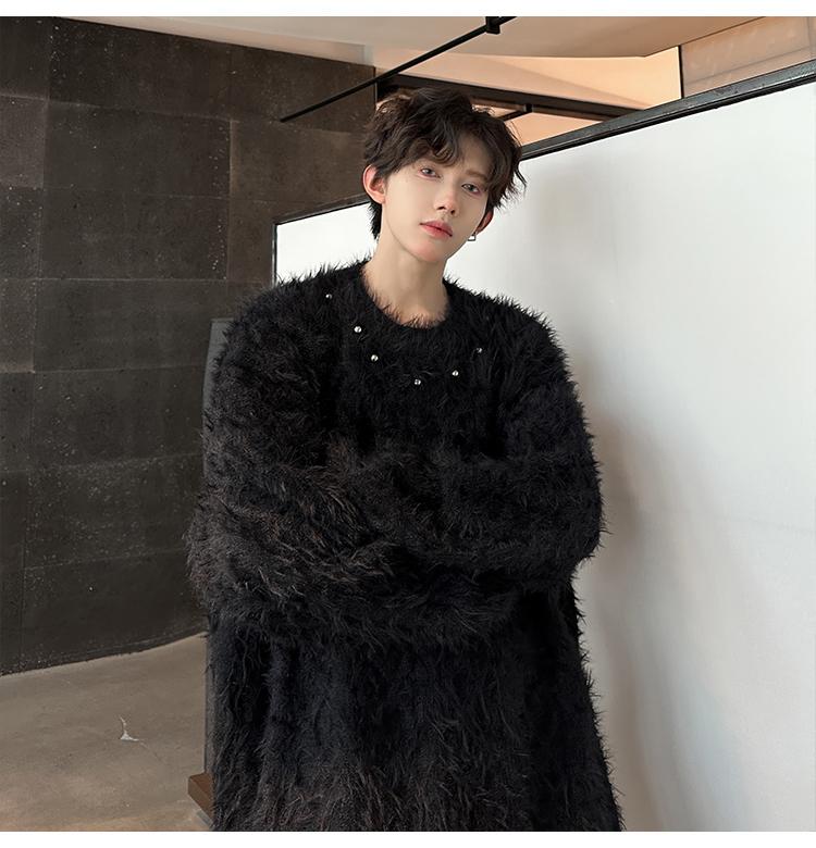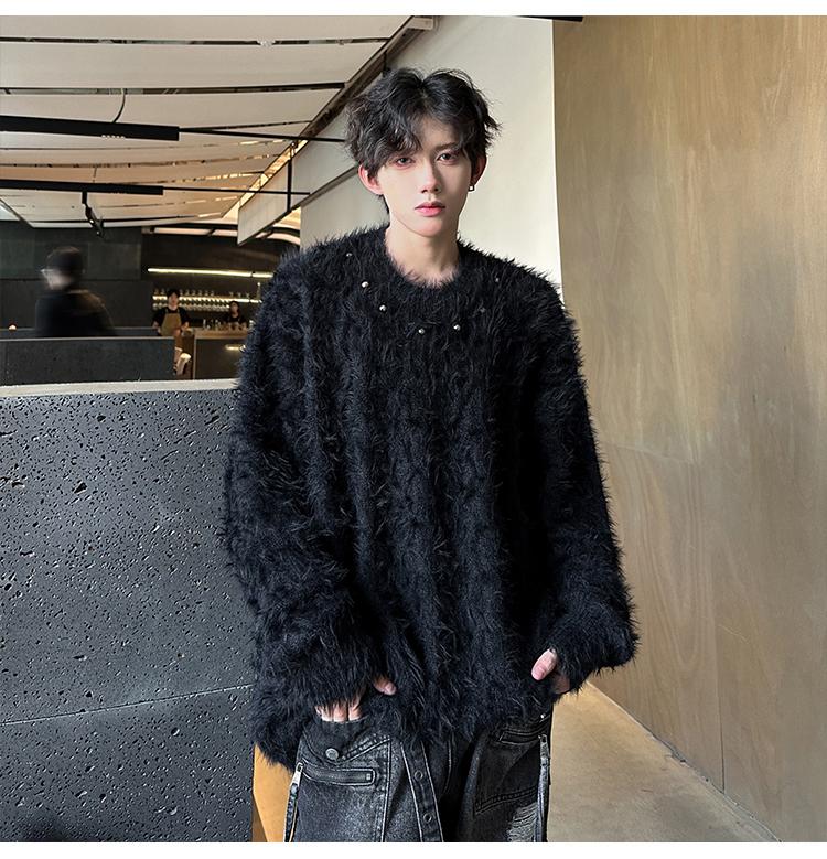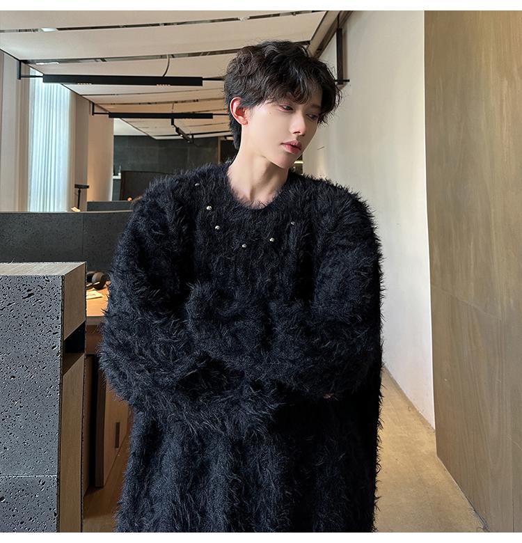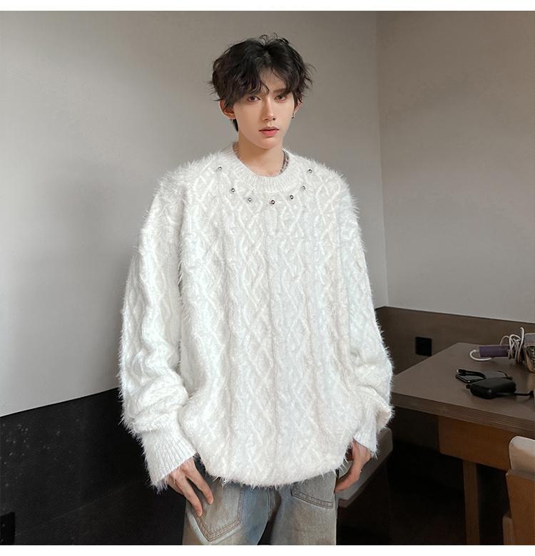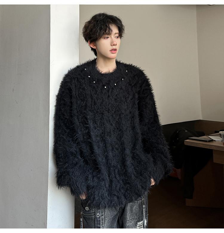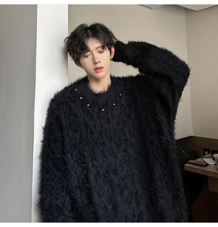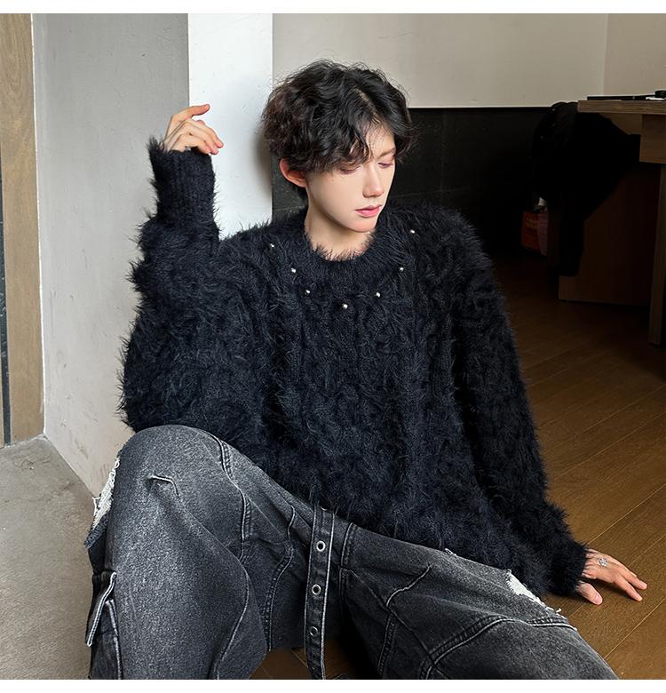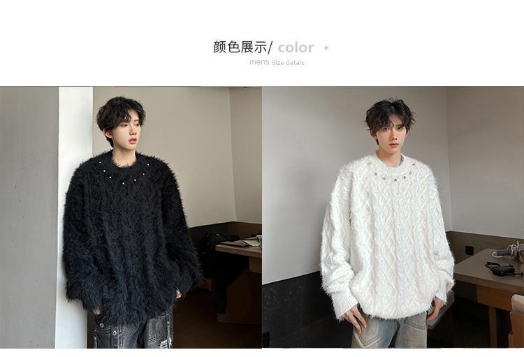 Suéter de punto jacquard de estilo perezoso para hombre, otoño e invierno, diseño de felpa de nicho de alta gama, suéter holgado de cuello redondo de felpa