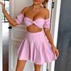 2024 Verano Nuevos Productos Europeo y Americano Transfronterizo para Mujer Rosa Corto Ajustado Chaleco Envolvente de Pecho + Falda Corta Plisada Dos Piezas