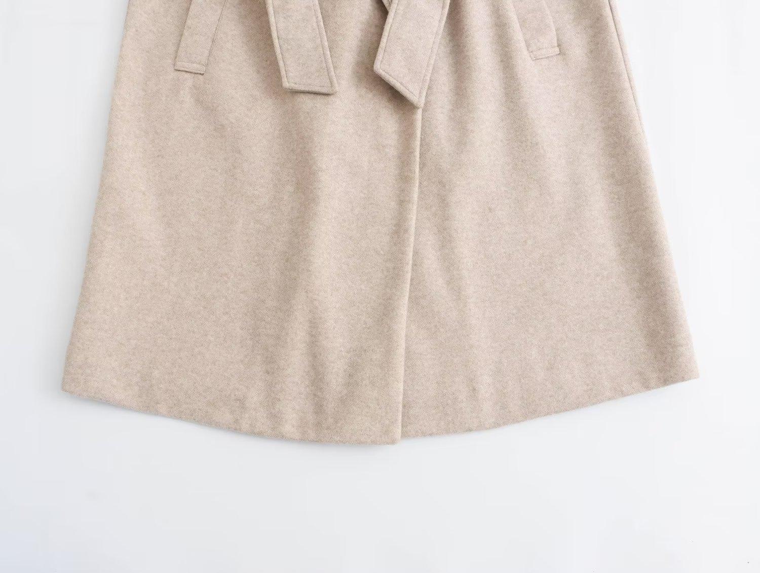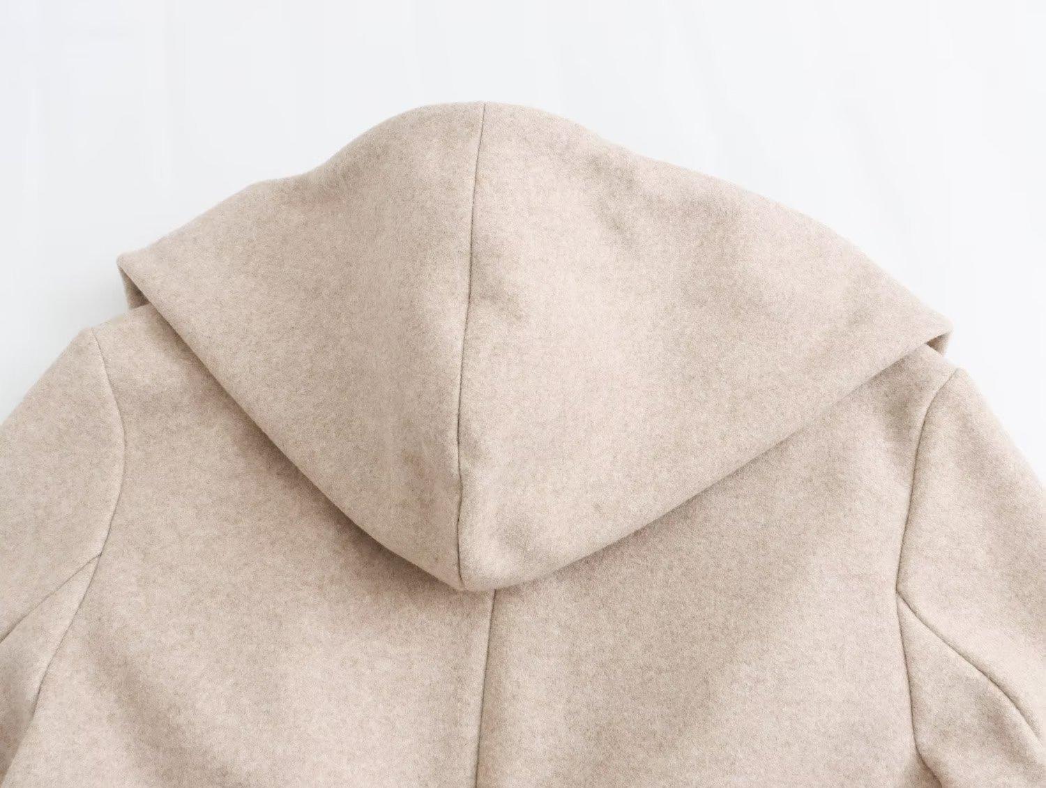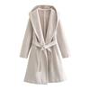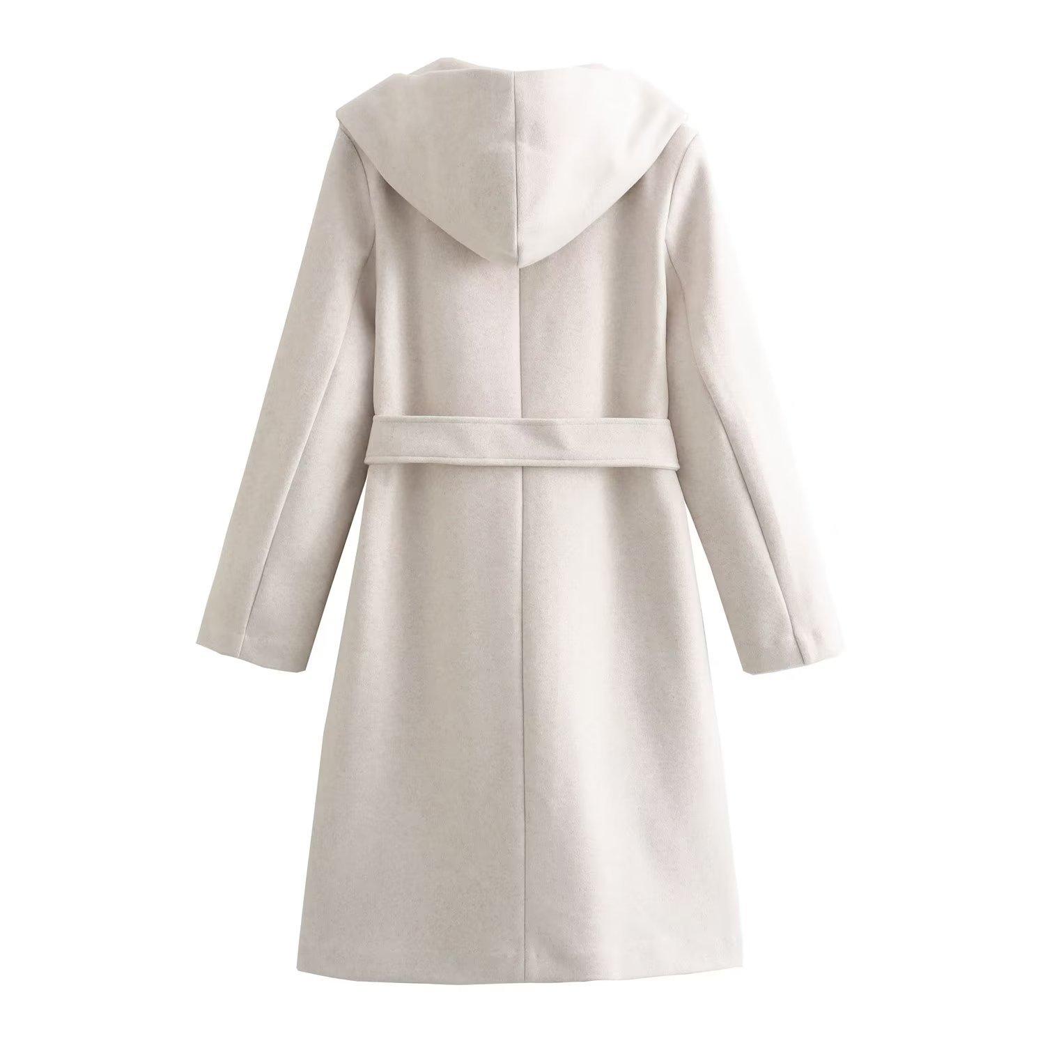 Abrigo de lana con cinturón de manga larga y capucha de color liso elegante para mujer, estilo transfronterizo europeo y americano, primavera de 2024
