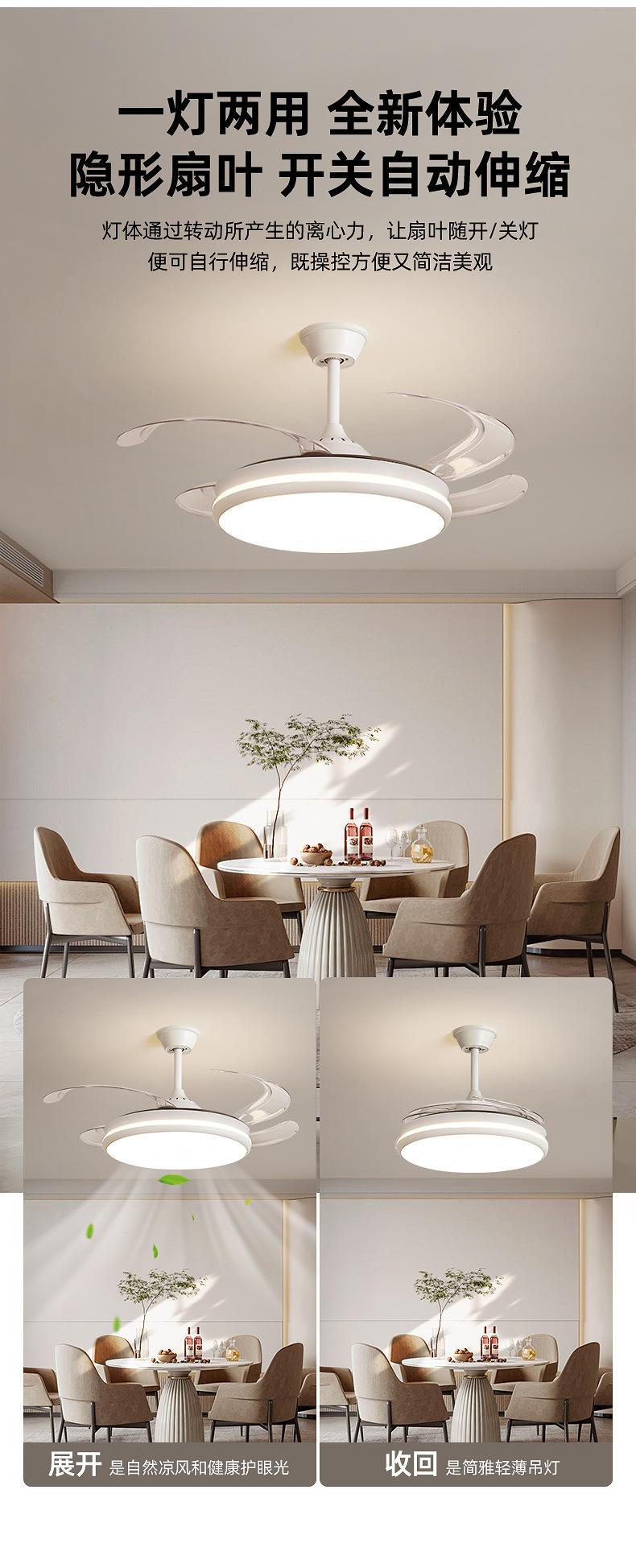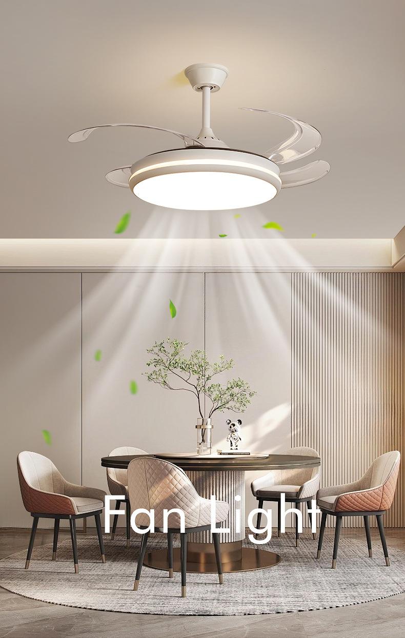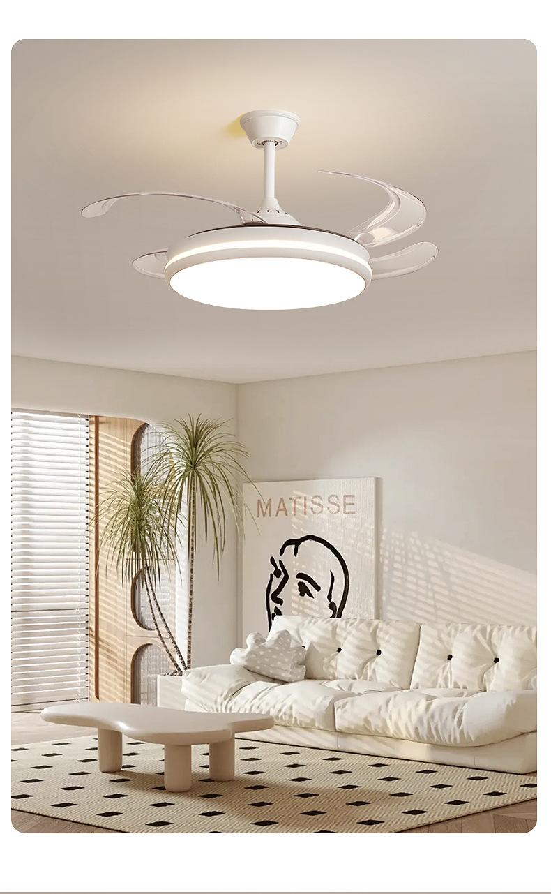 Lámpara de Ventilador Minimalista 2025 Nuevo Ventilador de Techo Invisible para Hogar Sala de Estar Comedor Dormitorio con Lámpara de Araña Integrada