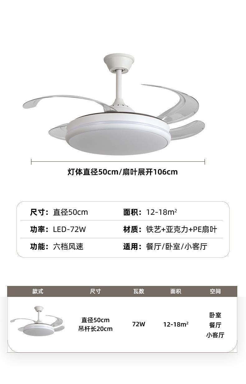 Full spectrum chandelier fan light 50cm-offline voice control, Full spectrum chandelier fan light 50cm-three-c...