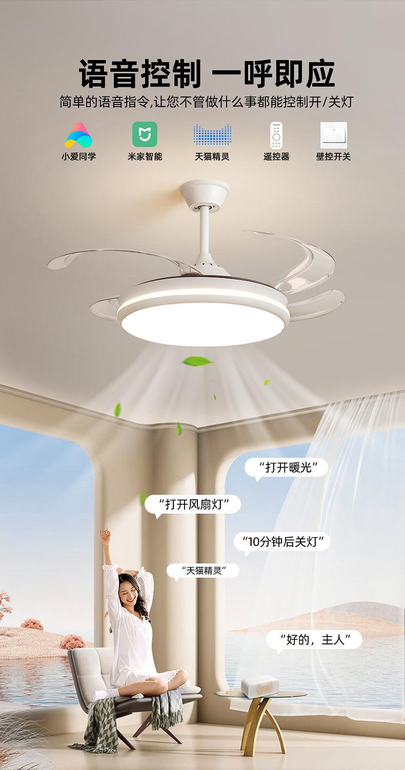 Full spectrum ceiling fan light 50cm - supports xiaoai classmates control + remote control