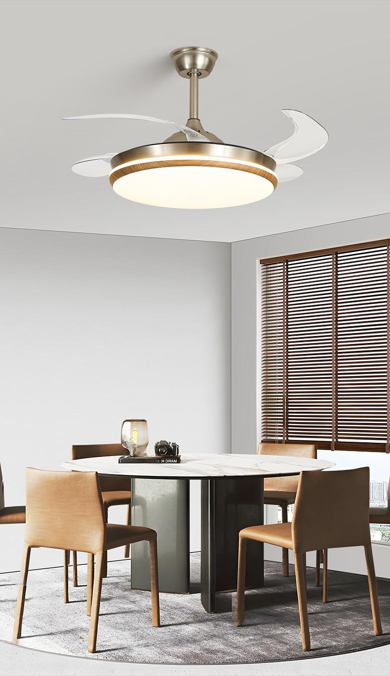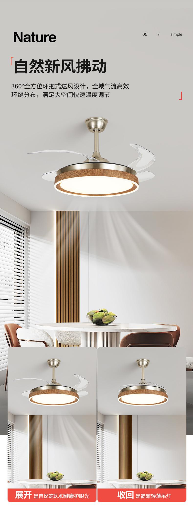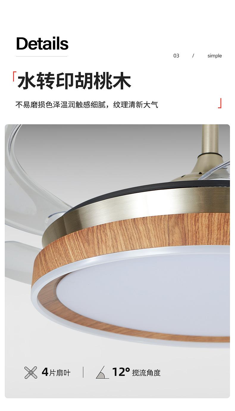Ventilador de restaurante de nogal, luz invisible, nuevo, sencillo, avanzado, silencioso, eléctrico, luz de techo, luz para sala de estar