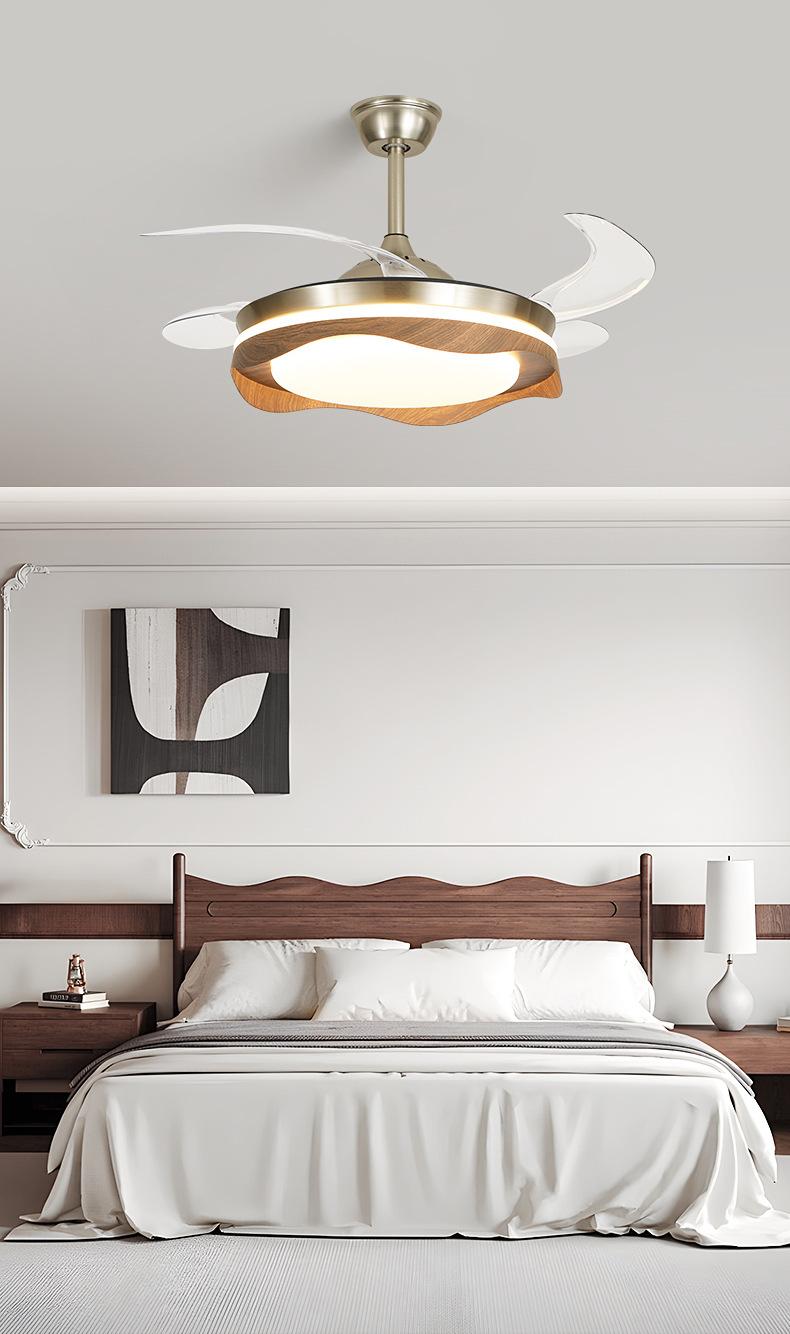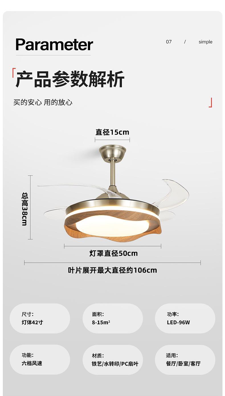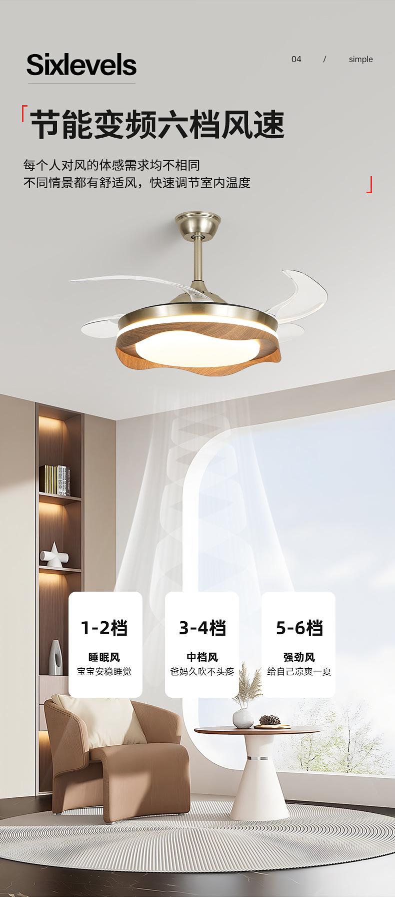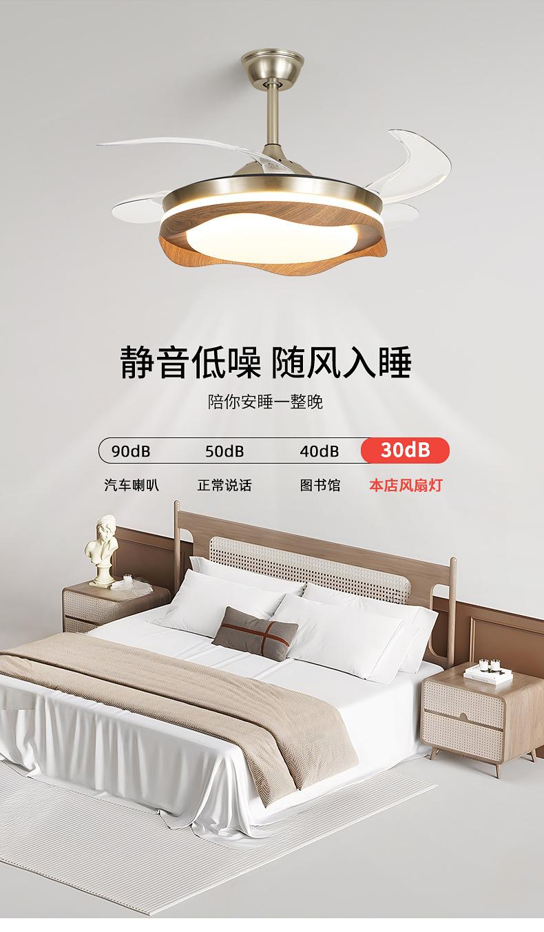 Ventilador de restaurante de nogal, luz invisible, nuevo, sencillo, avanzado, silencioso, eléctrico, luz de techo, luz para sala de estar