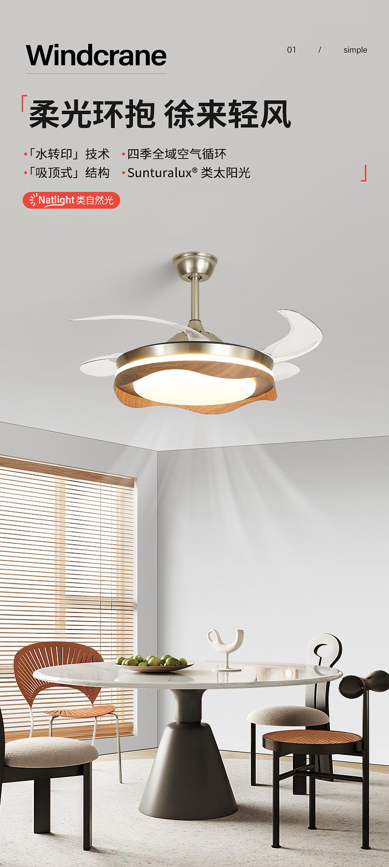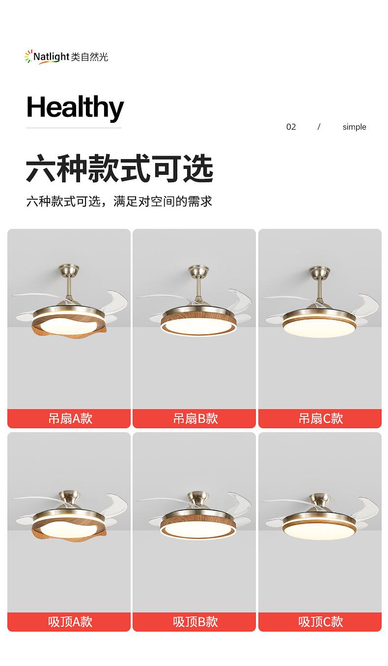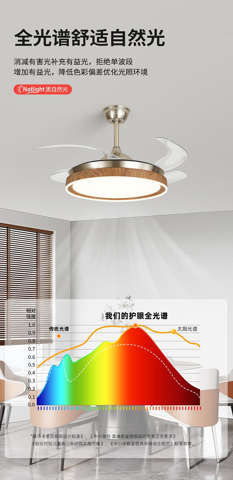Full spectrum a type ceiling fan model 42inch - three-color dimming + remote control