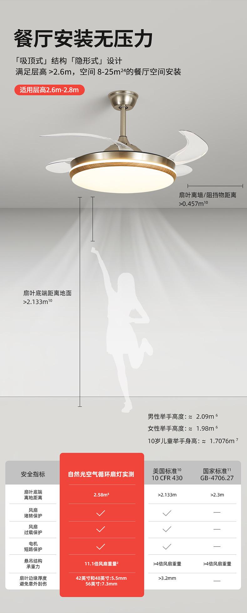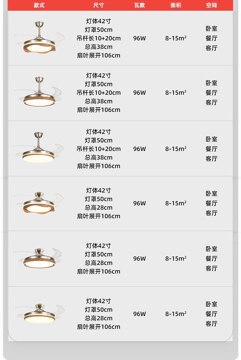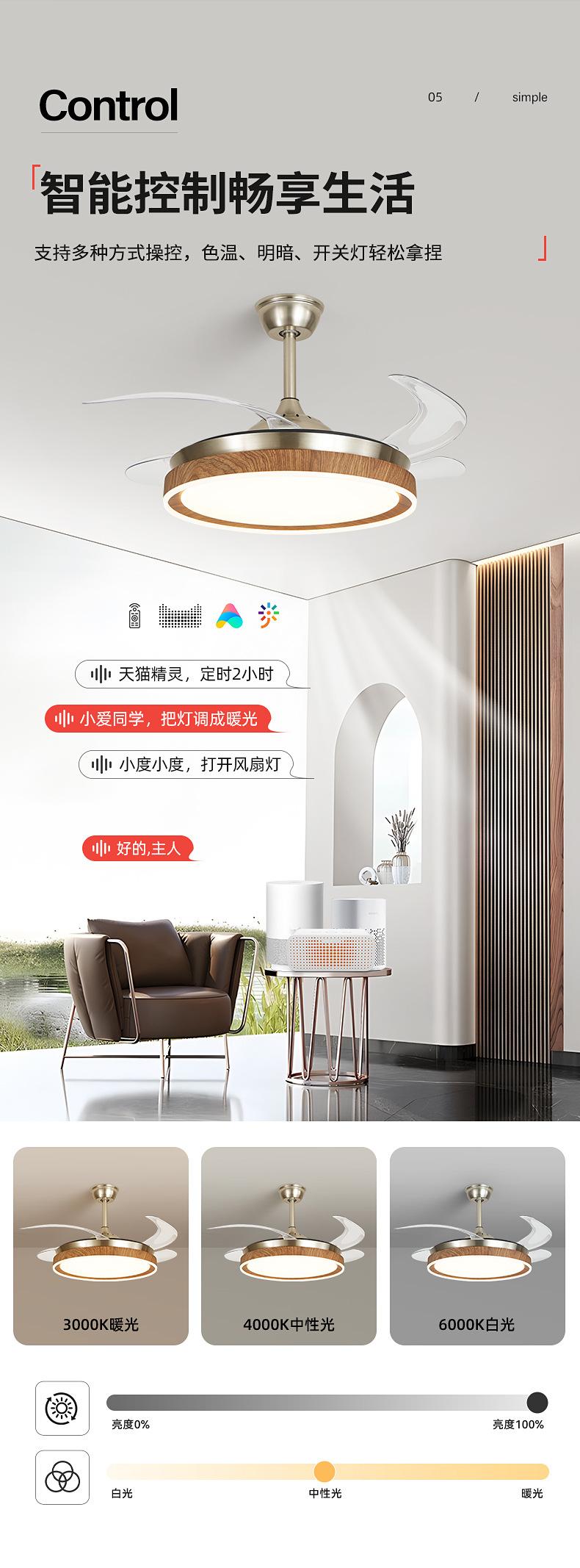 Full spectrum a type ceiling fan model 42inch - three-color dimming + remote control