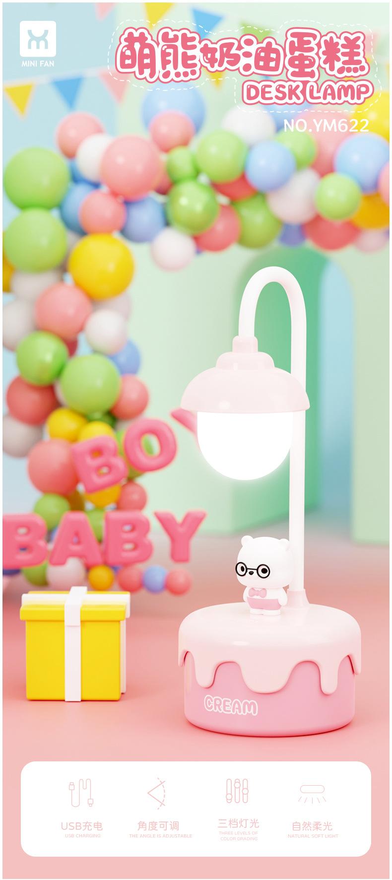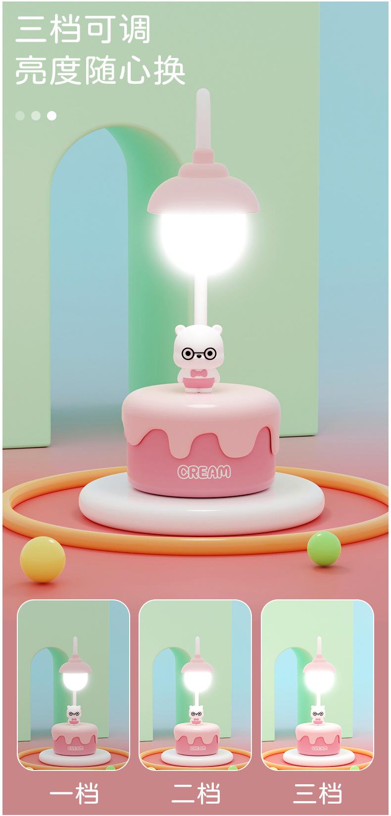Lámpara de mesa con forma de pastel de oso, manguera de carga, luz nocturna angular, lámpara de aprendizaje con protección ocular para niños, fábrica de regalos transfronteriza