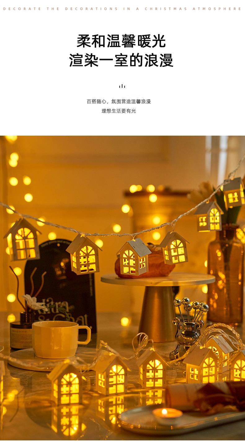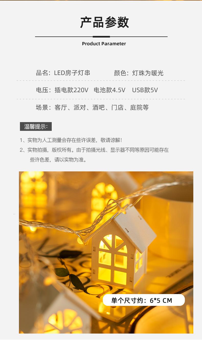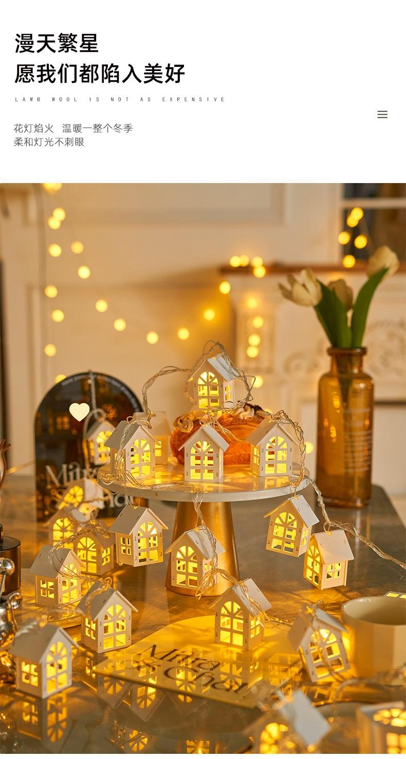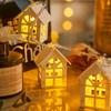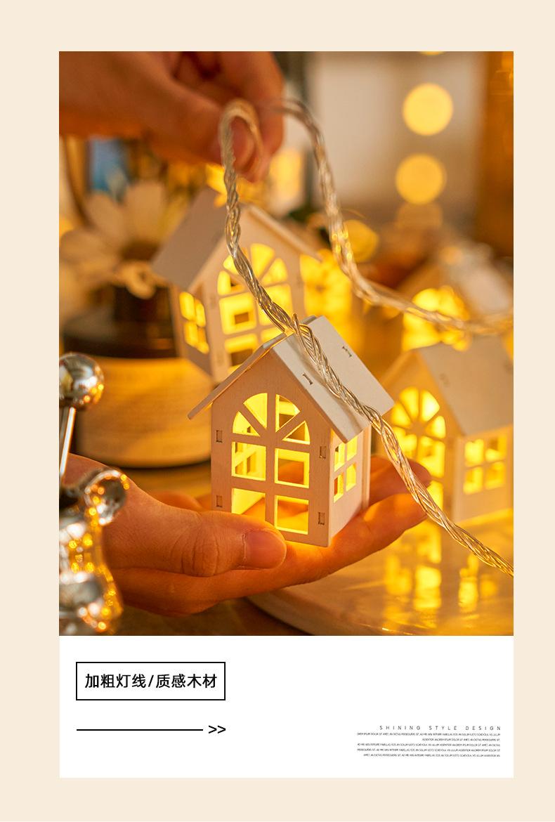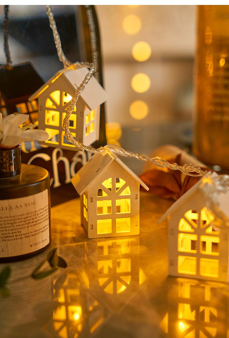 White wooden small house light string - 2.1m light battery model always on, White wooden small house light str...