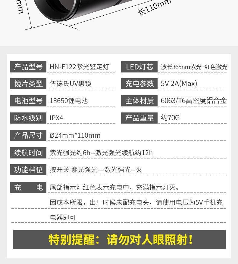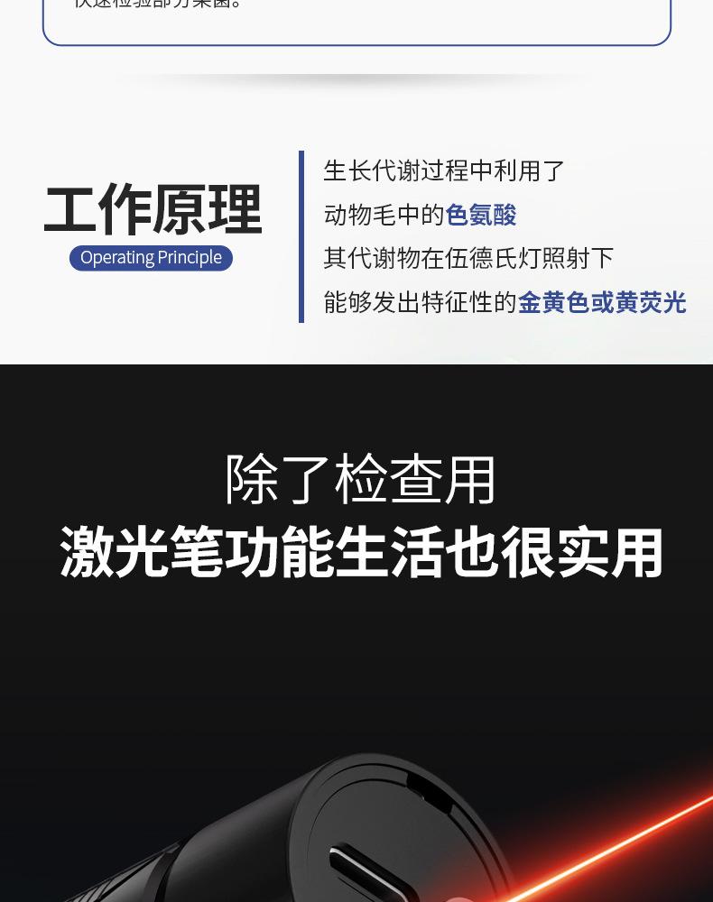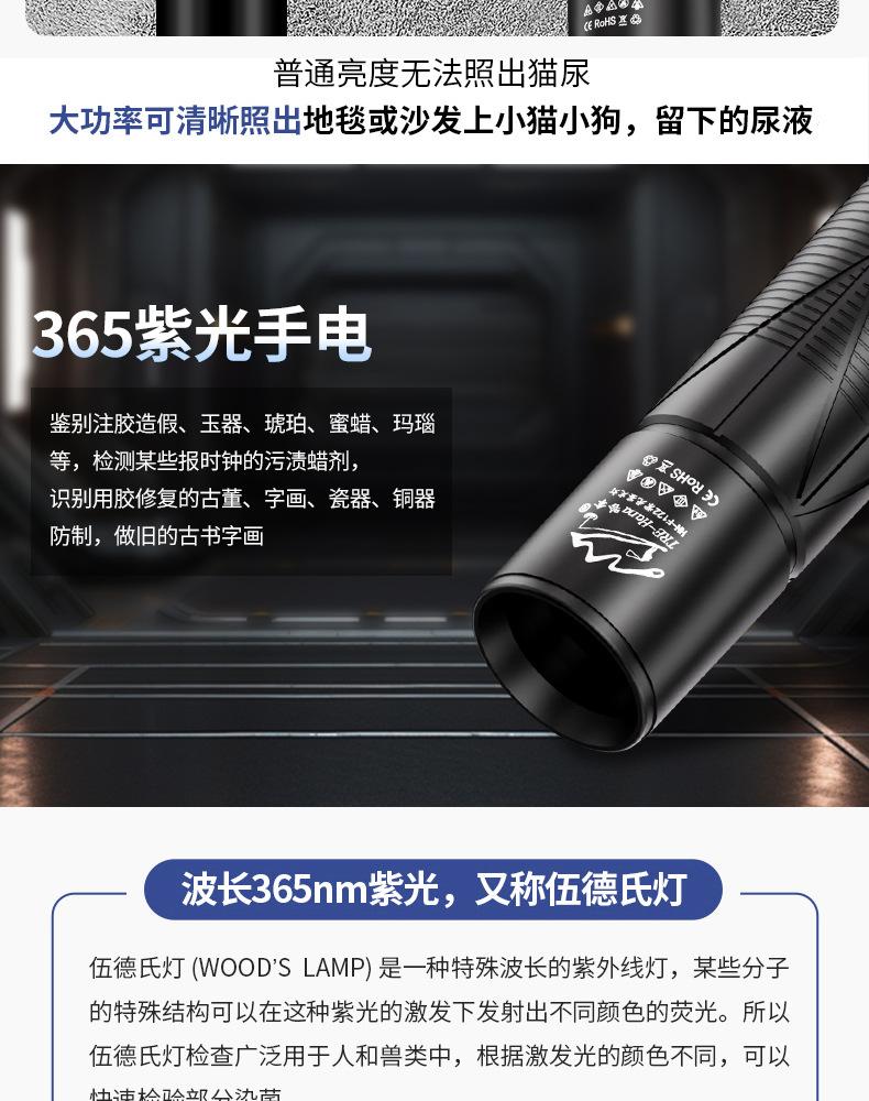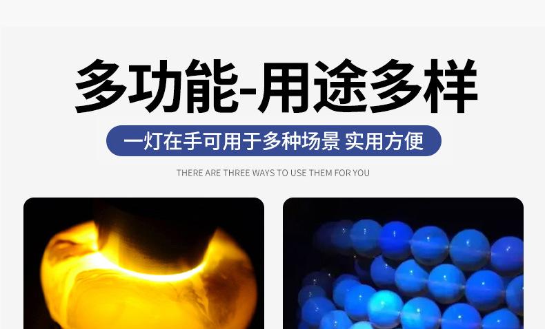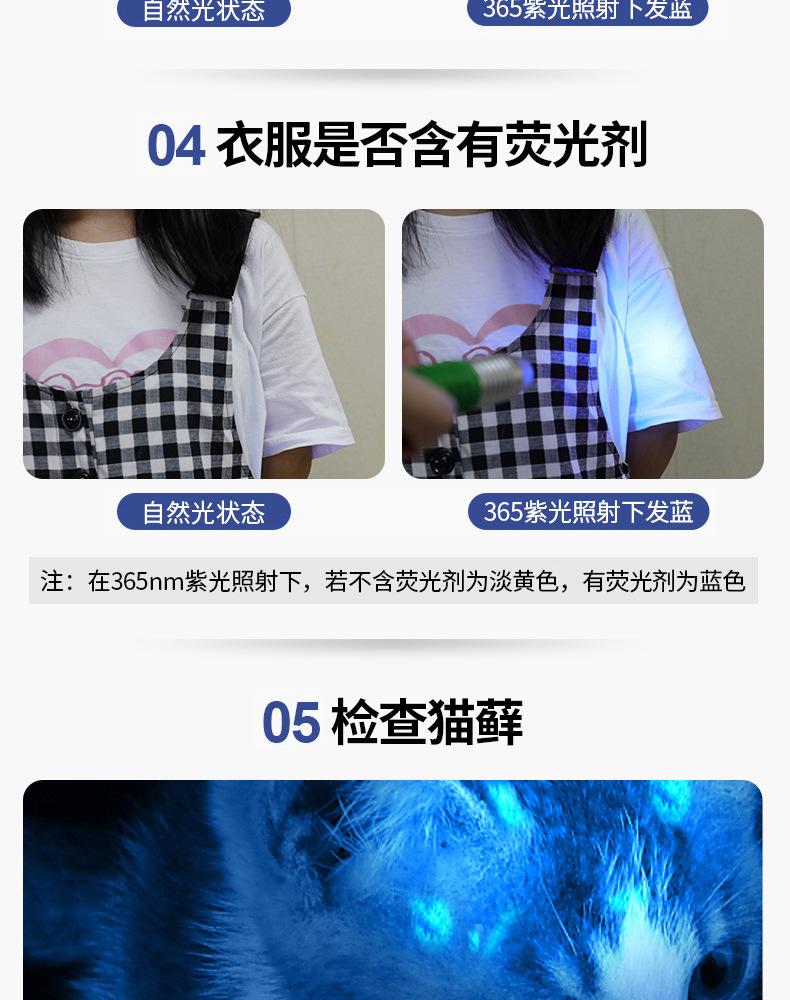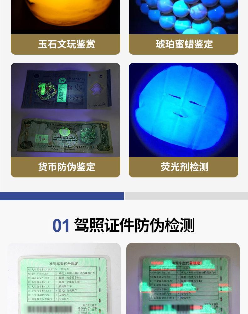 Linterna de Identificación Luz Púrpura Especial Detección de Aflatoxinas Detección de Jade Linterna Luz UV de Wood Espejo Negro Detección de Moneda