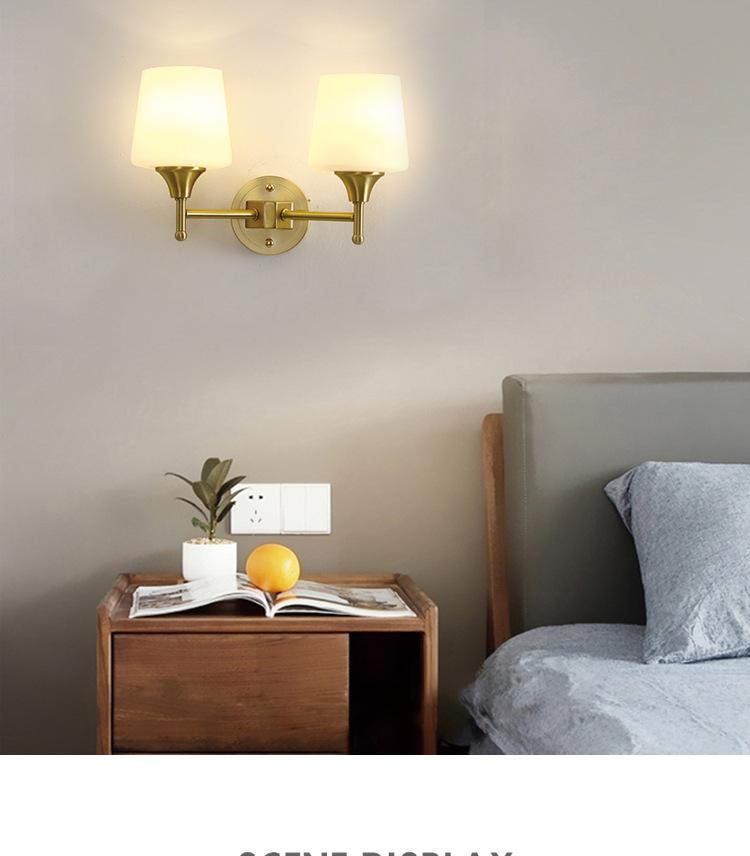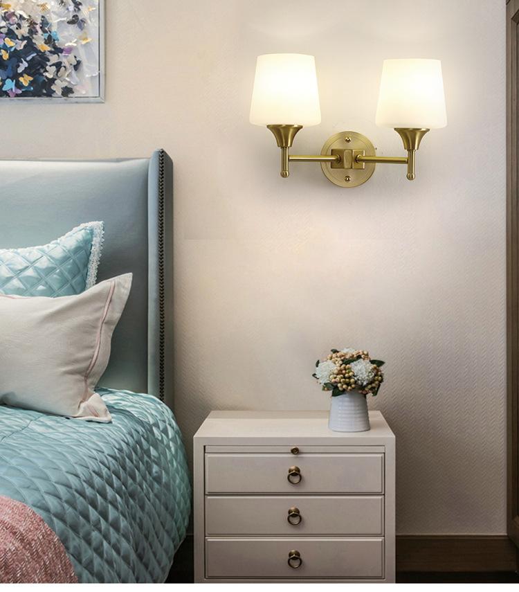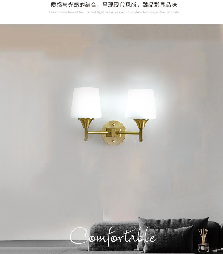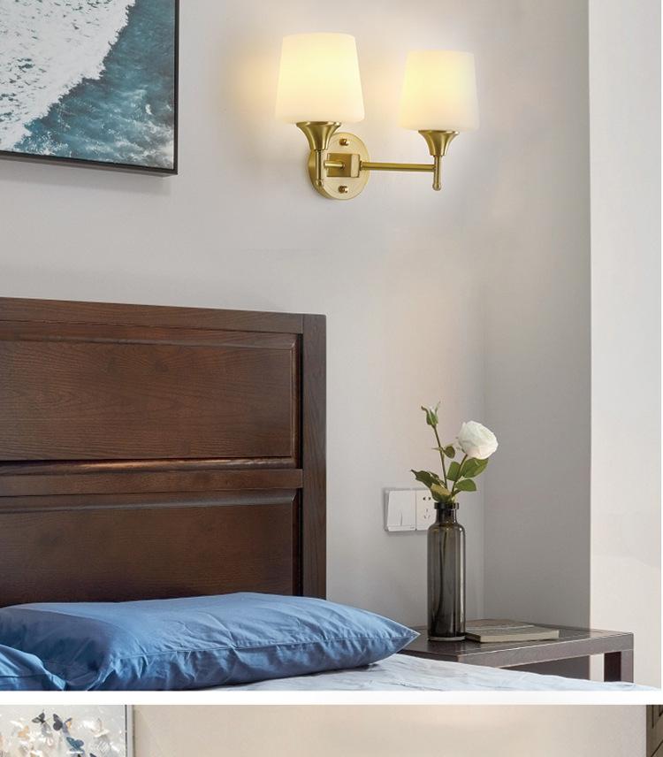 Lámpara de pared de doble cabezal de cobre, moderna, sencilla, nórdica, para dormitorio, sala de estar, TV, fondo, pared, pasillo, luz LED