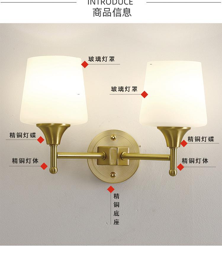 All-copper wall lamp type a double-headed glass + 12w three-color led, all copper rejects fakes